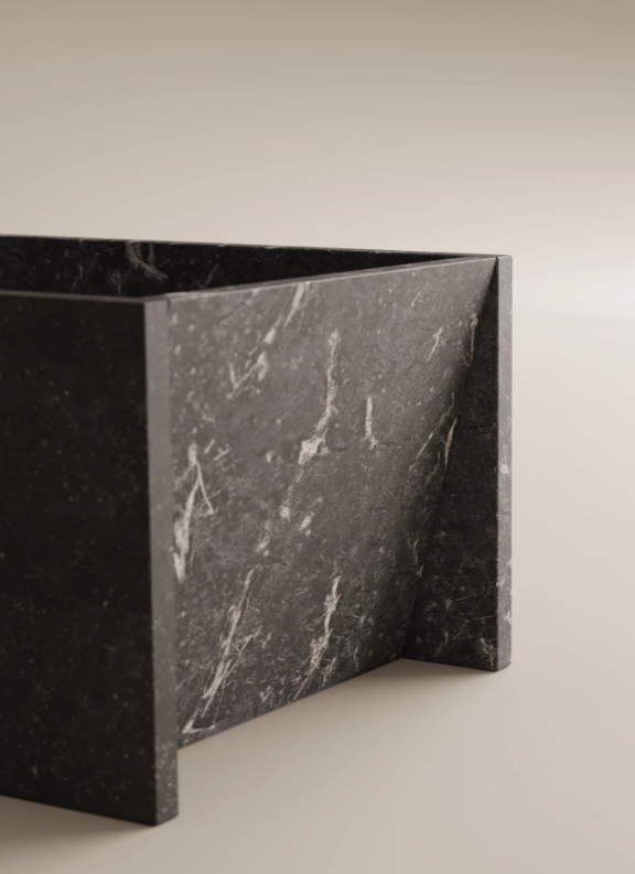 Together with the washbasin of the same name, the new bathtub of architectural marks launches the collaboration between Agape and the French architect. Thanks to an ingenious system of invisible joints in the construction of the bathtub the surfaces appear to simply approach one another side by side. The surfaces brush gently against one another, and thanks to the extremely precise inclination of the panels that become the backrests, the bathtub is transformed into a cozy nest where you can sit, stretch out, read, and relax. Like the washbasin, this piece is an abstract object that uses contrast to enhance the almost baroque splendor of the marble.