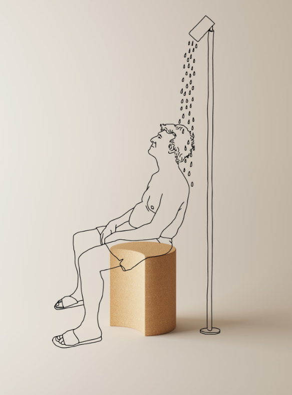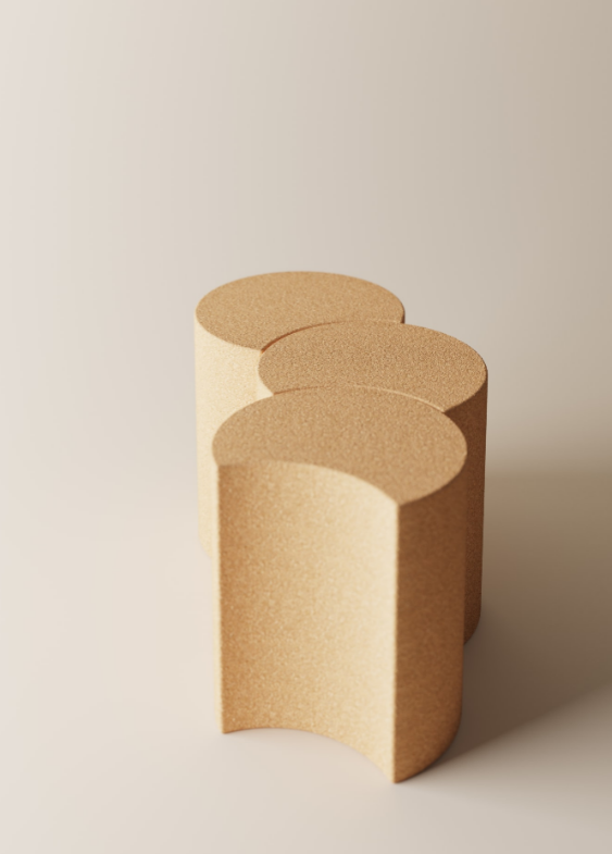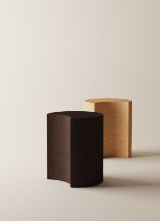 Vis-a?-vis is a light and maneuverable stool made entirely of natural or heat-treated cork. It can also be used as a small side table. Removing a slice from the cylindrical body creates a curve that has the same radius as the base. That means one piece can be linked to another indefinitely, even creating a circular motion. That same curve also allows two people to sit comfortably facing each other on two stools. Like Rendez-vous, the Vis-a?-vis stool too has been designed to be water-resistant for an extremely wide range of uses.
