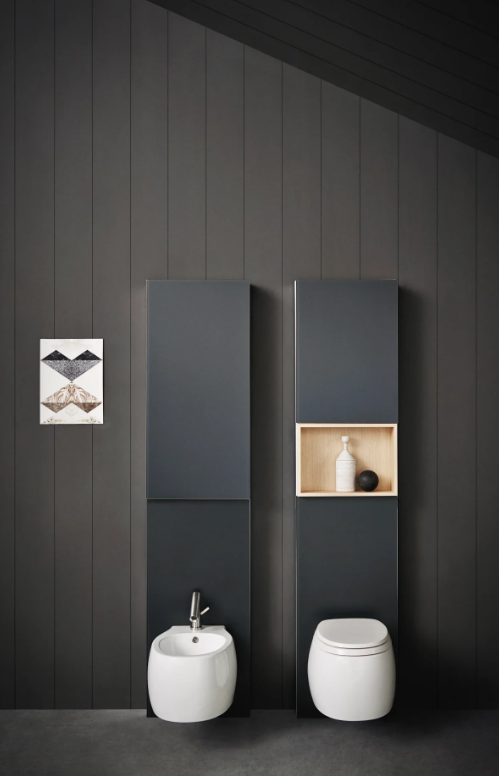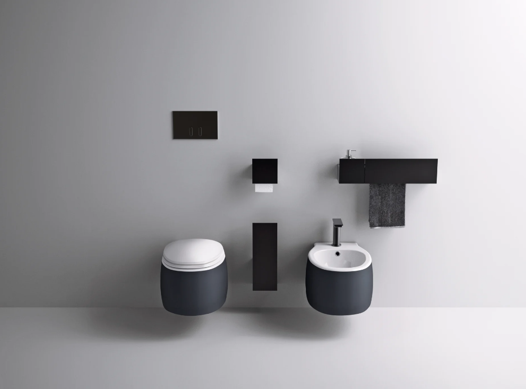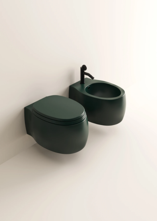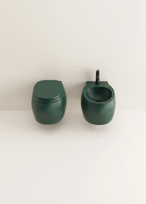 The rimless Pear 2 sanitary ware echoes the design of the Pear collection, interpreting it however with a more streamlined shape. Available in the wall-mounted type, it is available in all glossy or matt white, a bathroom classic, or in a two-colour version, to create a dynamic visual effect. Now also available in the colored version both internally and externally with green or dark grey finish, with seat in the same color.