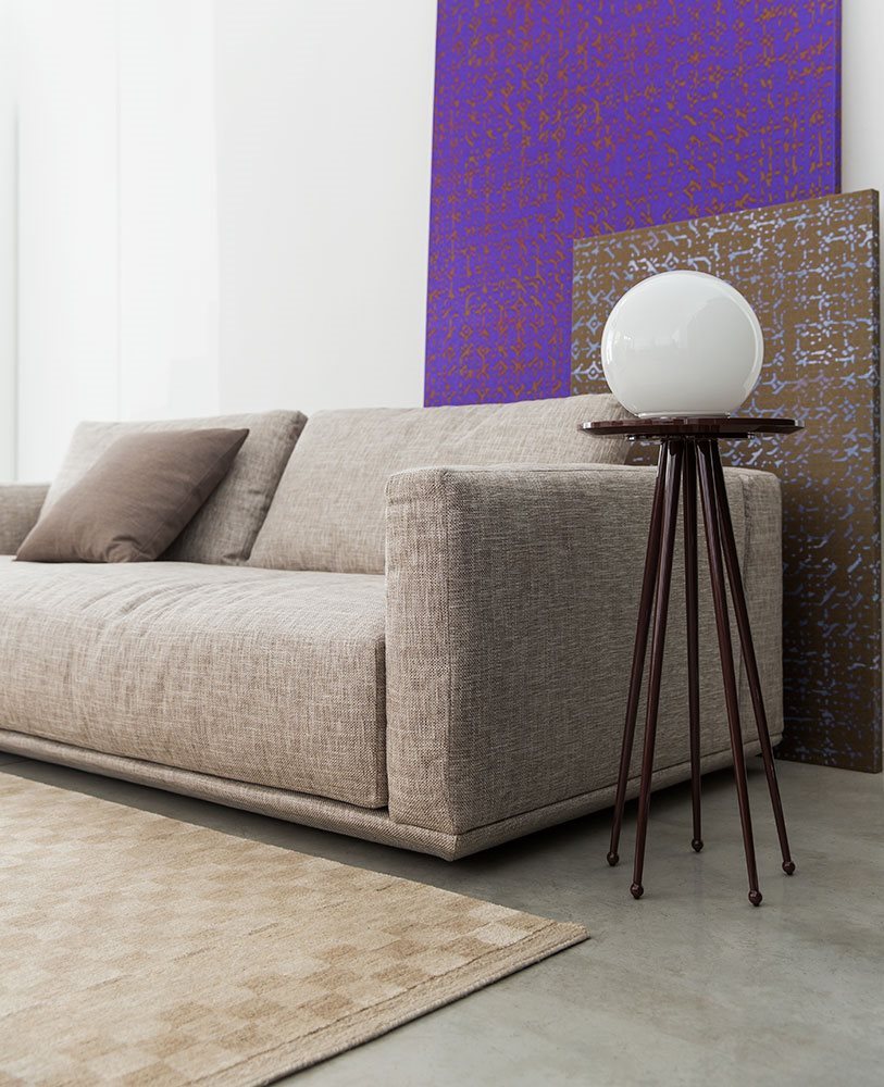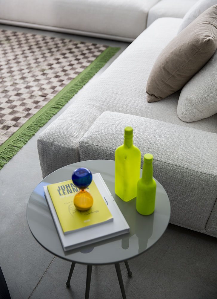 Small tables. Structure: in metal with 5 legs. Structure finishing: lacquered. Top: MDF. Top finishing: lacquered.