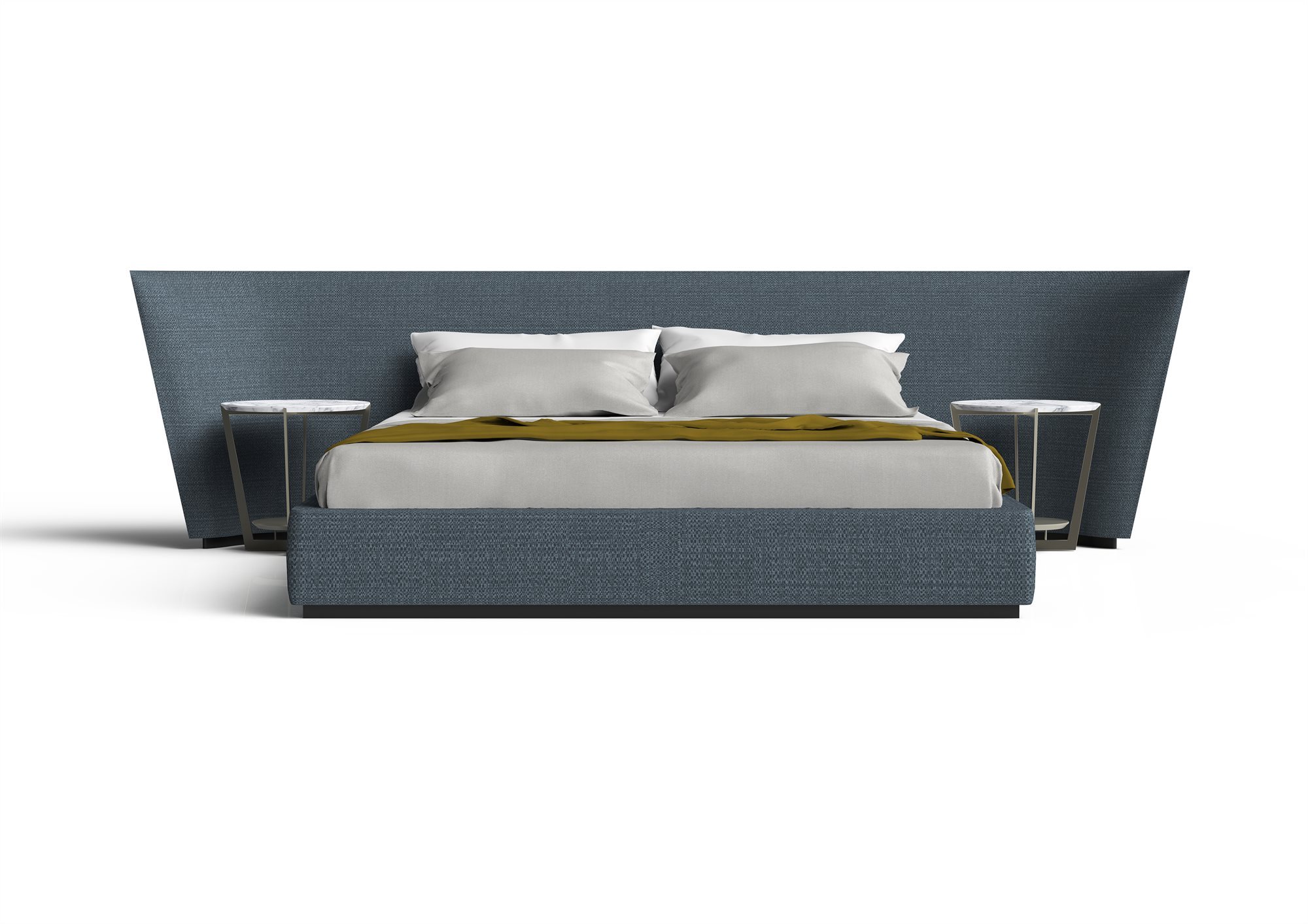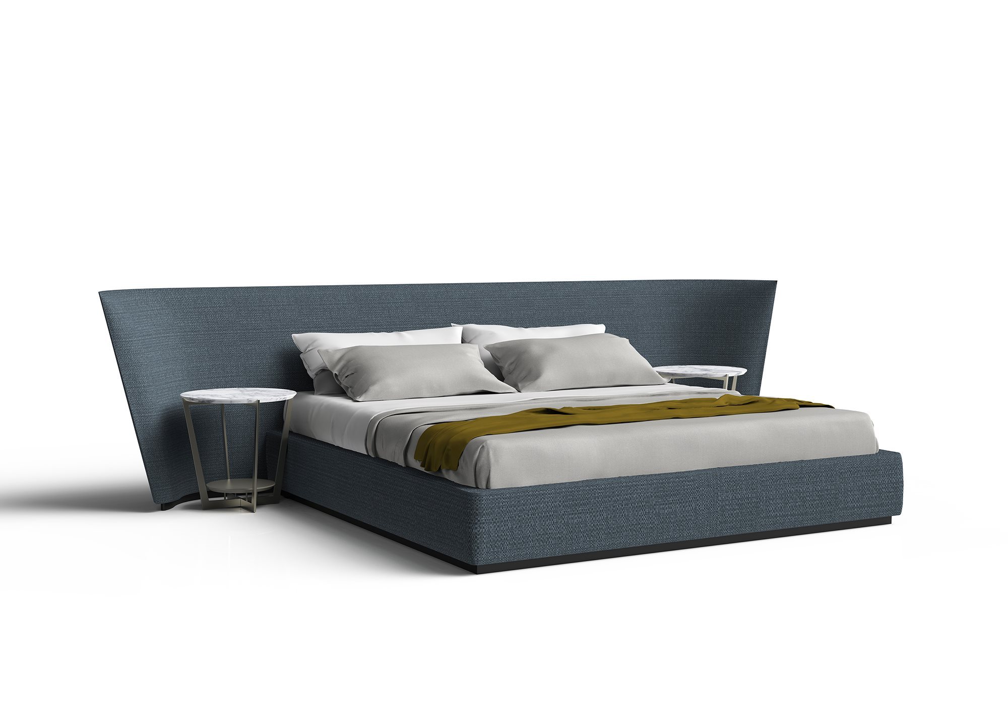 The defining feature of the Semira bed is the wide embrace of the bed head which stretches round to encompass the bedside tables, creating an intimate atmosphere and conjuring up an instant feeling of comfort. Its soft, cosy shape fits perfectly into modern and classic settings, thanks to its simple style and timeless design. The covers, featuring the best of skilled craftsmanship, can have a buttoned-back or quilted finish with an original geometrical texture.