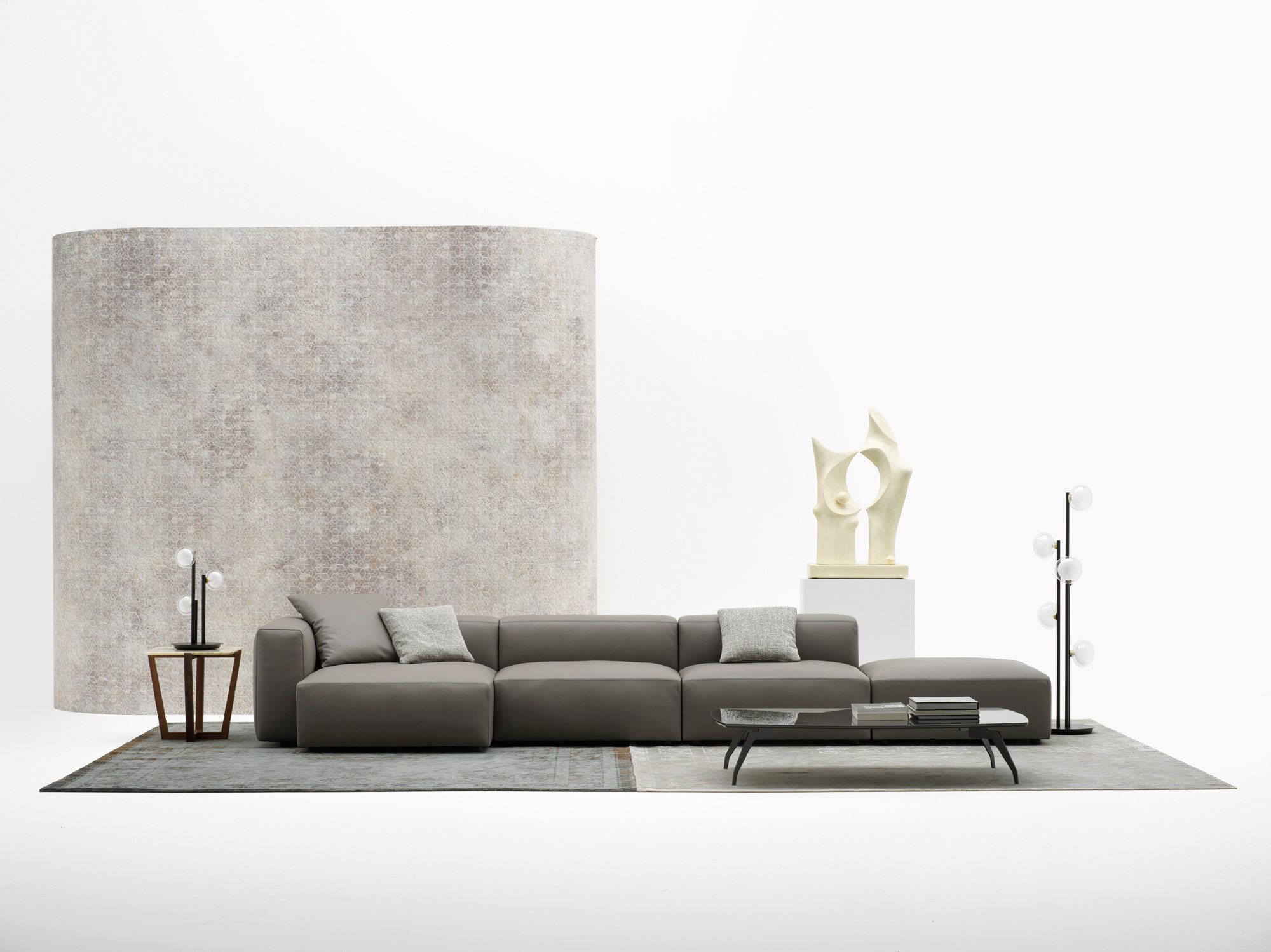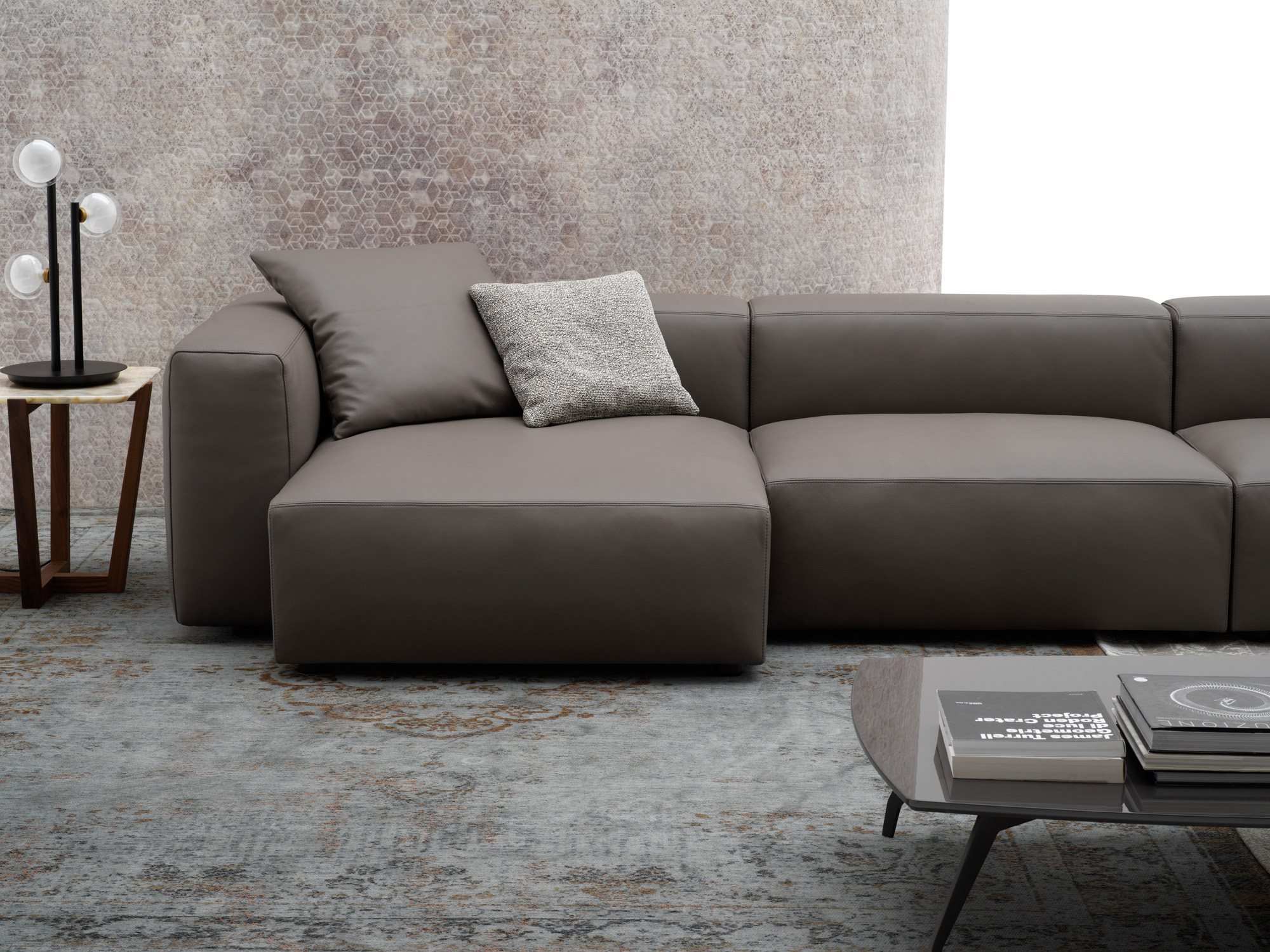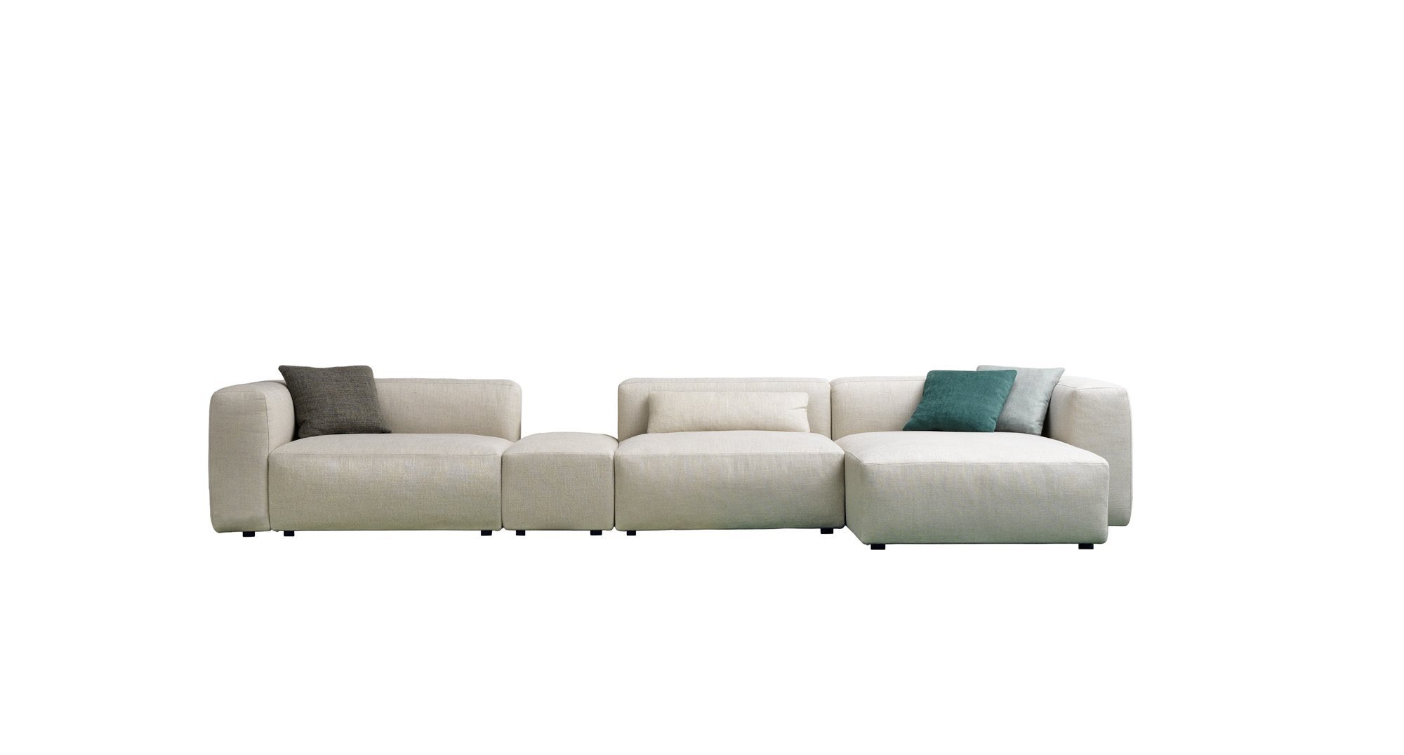 Alcazar is a contemporary and versatile collection of sofas characterized by important sizes, along with a calibrated proportion of the various parts. Whether it be the linear or the modular composition, this sofa structure starts from a solid base formed by padded elements that rest on the ground and is distinguished by its formal continuity between seat, armrest and backrest. Alcazar is a family of infinite modular elements: an idea of a sofa considered as an island of relaxation where to live freely. A sofa that finds its full expression in an ample modularity while giving life to original solutions that are suitable for both domestic living and large common areas and for the contract sector.