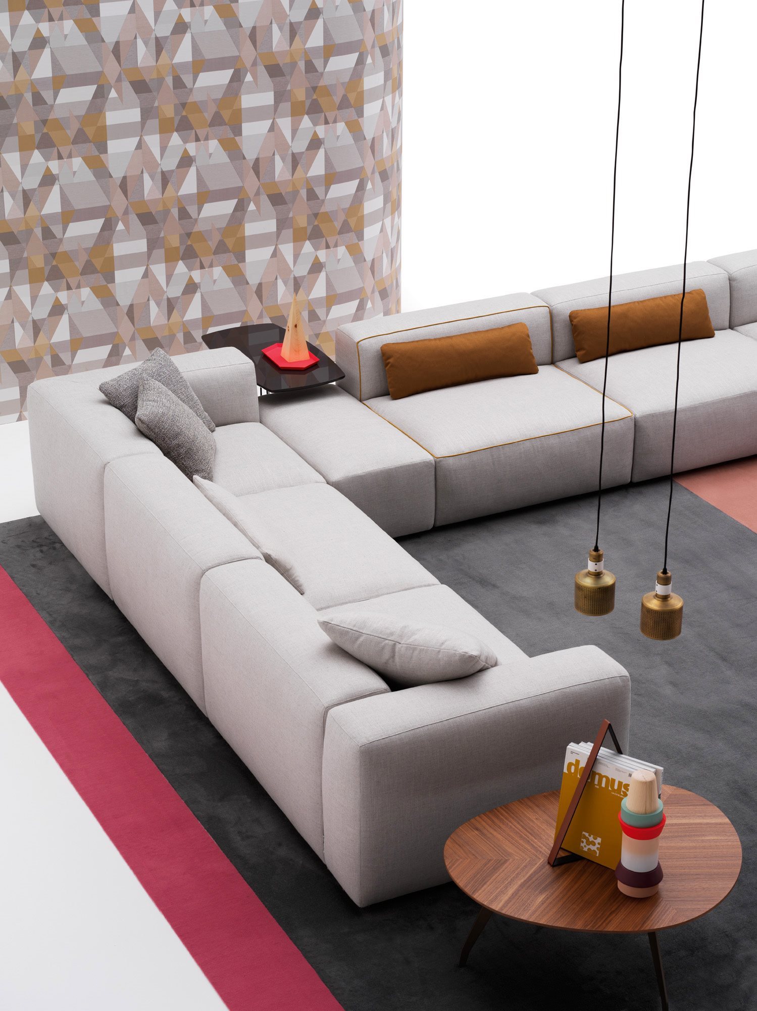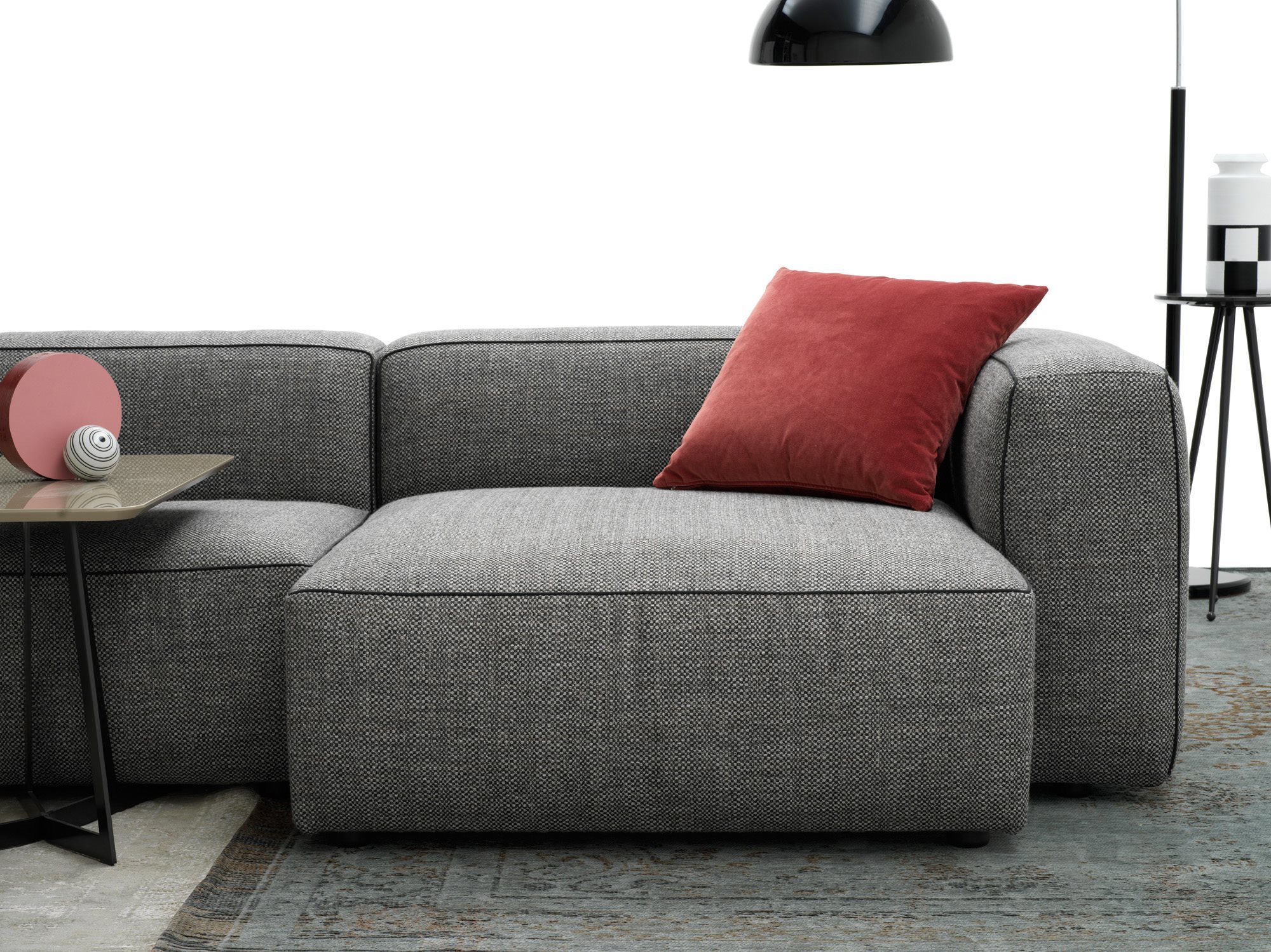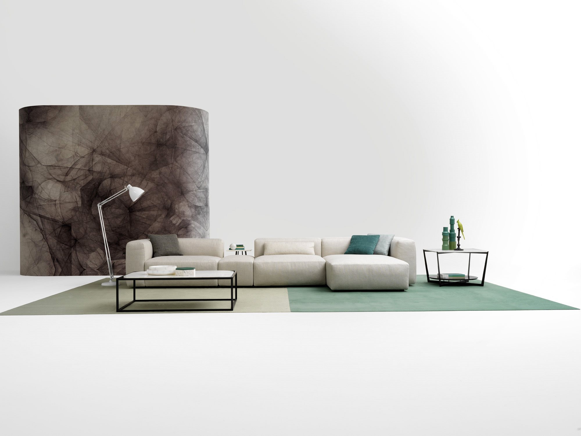Alcazar is a contemporary and versatile collection of sofas characterized by important sizes, along with a calibrated proportion of the various parts. Whether it be the linear or the modular composition, this sofa structure starts from a solid base formed by padded elements that rest on the ground and is distinguished by its formal continuity between seat, armrest and backrest. Alcazar is a family of infinite modular elements: an idea of a sofa considered as an island of relaxation where to live freely. A sofa that finds its full expression in an ample modularity while giving life to original solutions that are suitable for both domestic living and large common areas and for the contract sector.