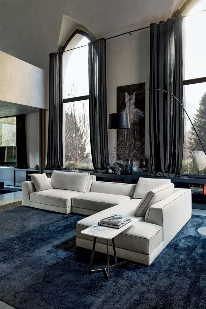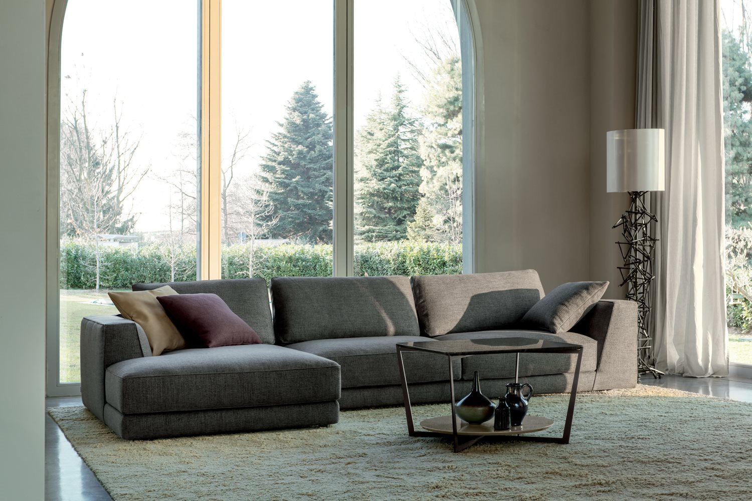 If you are looking for a highly customizable sofa, Dion modular system is the perfect solution. In addition to its many possible configurations suitable to furnish any kind of space, two different seat depths as well as two different backrest heights are available to perfectly meet the needs and tastes of all users. The range is completed by charming islands, a true invitation to relax.  Dion, a true invitation to relax