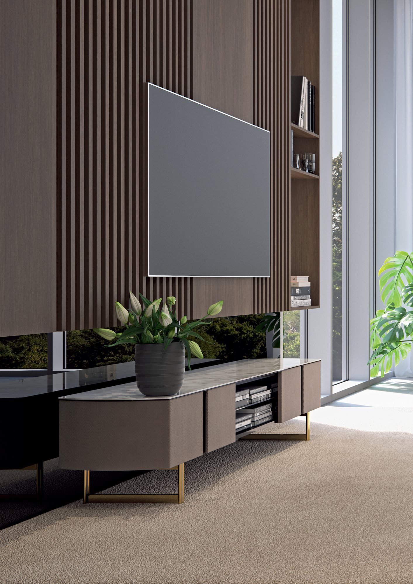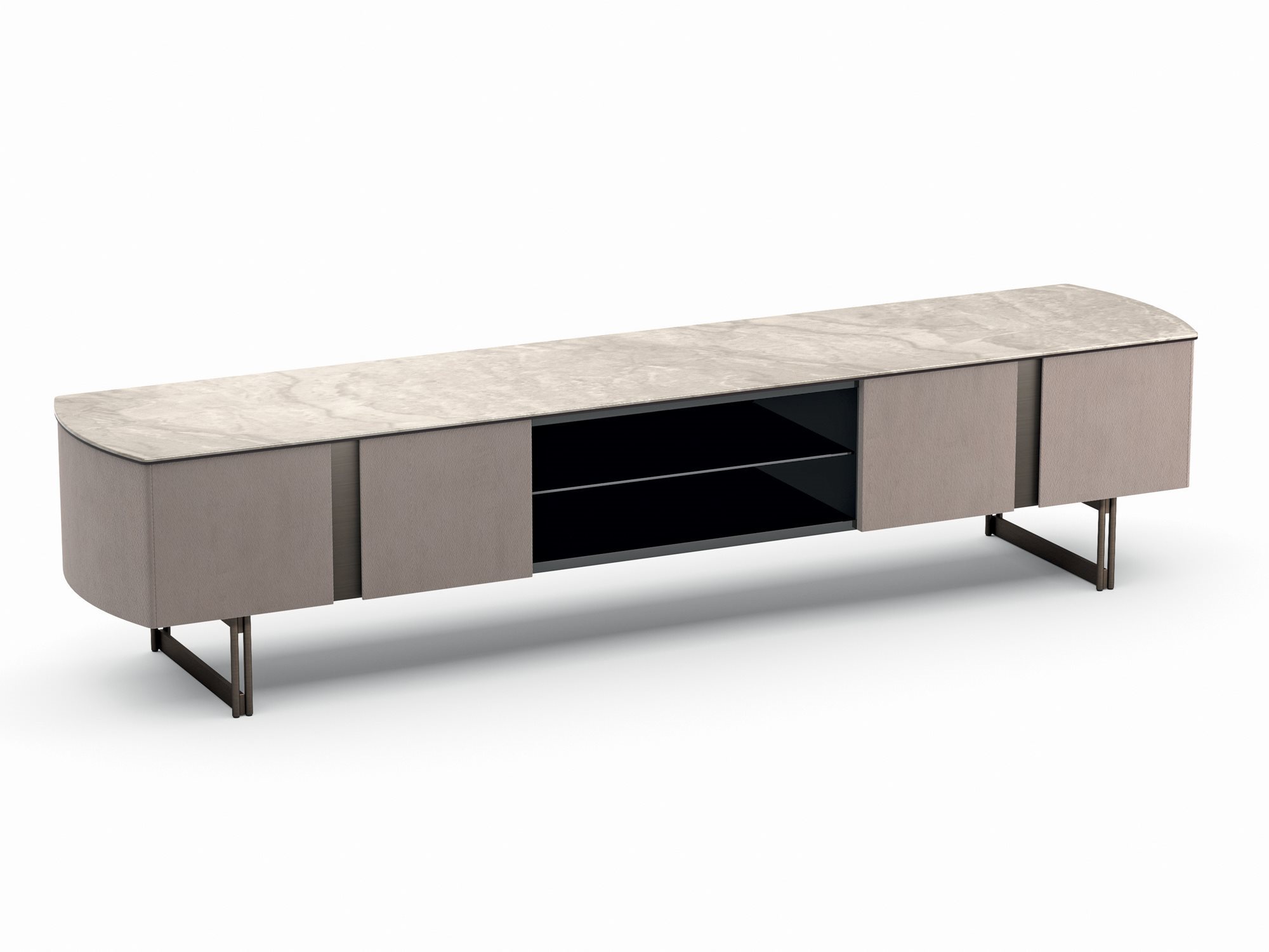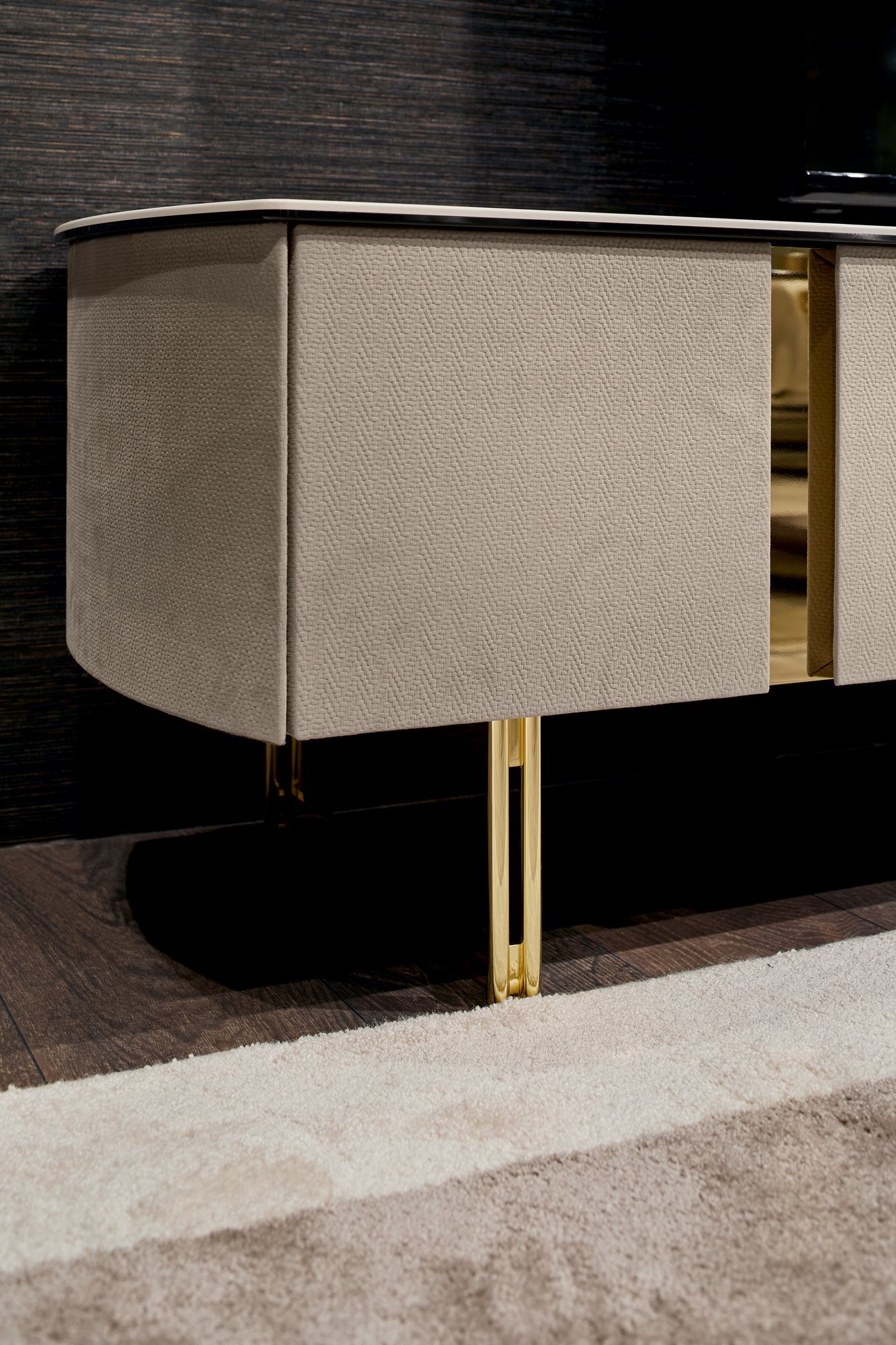The elegance and refinement of the Butterfly cabinet series reside in the details and the skillful combination of precious materials. The metal inserts at the handles and the design of the feet give character and style to each element of the collection. The unusual layout with rounded sides completes the unique design of this collection.
