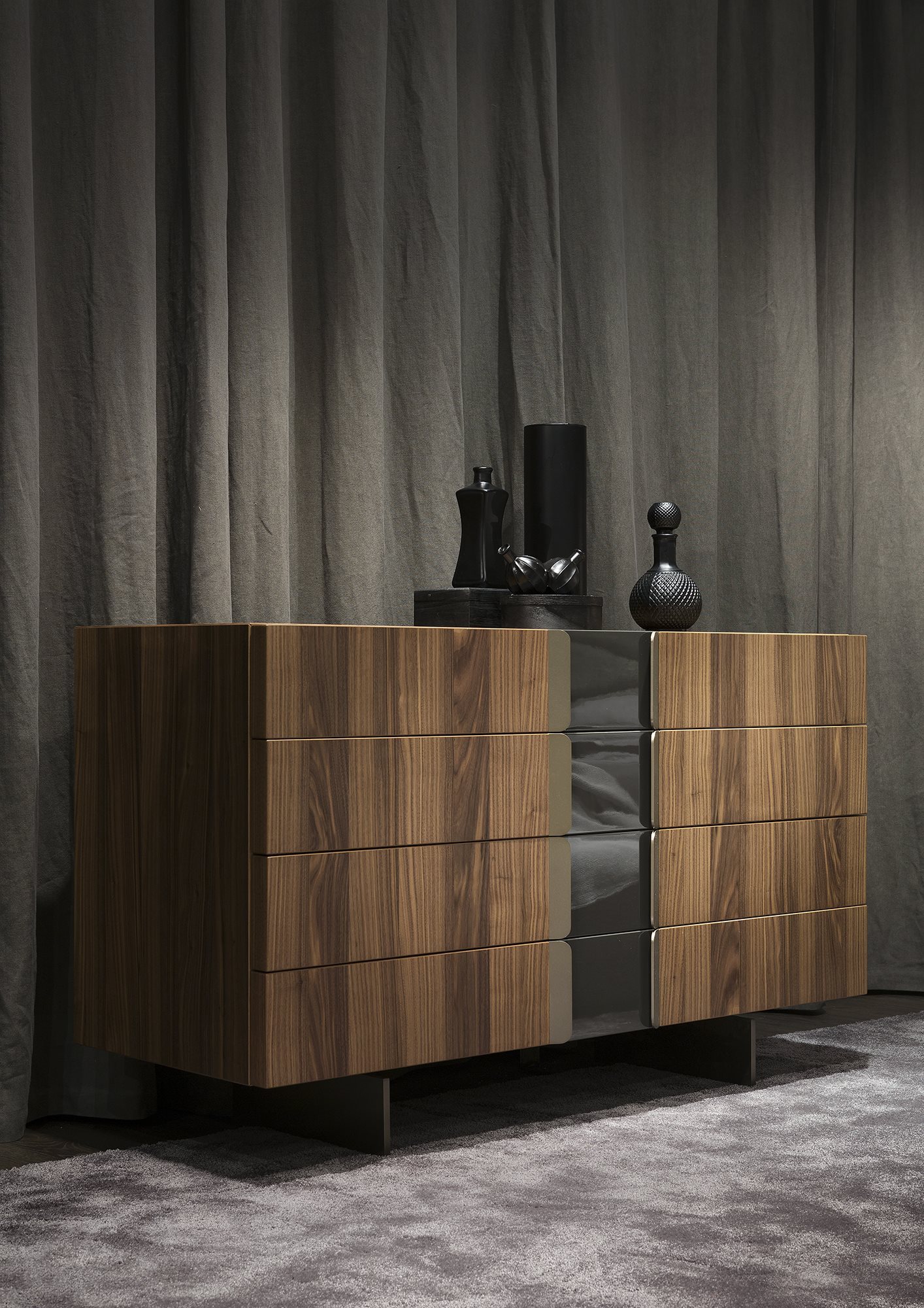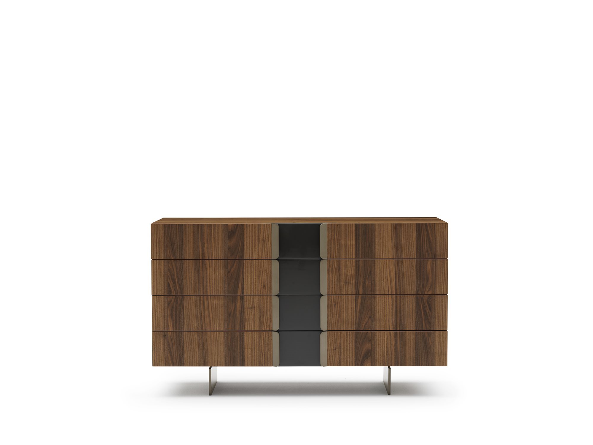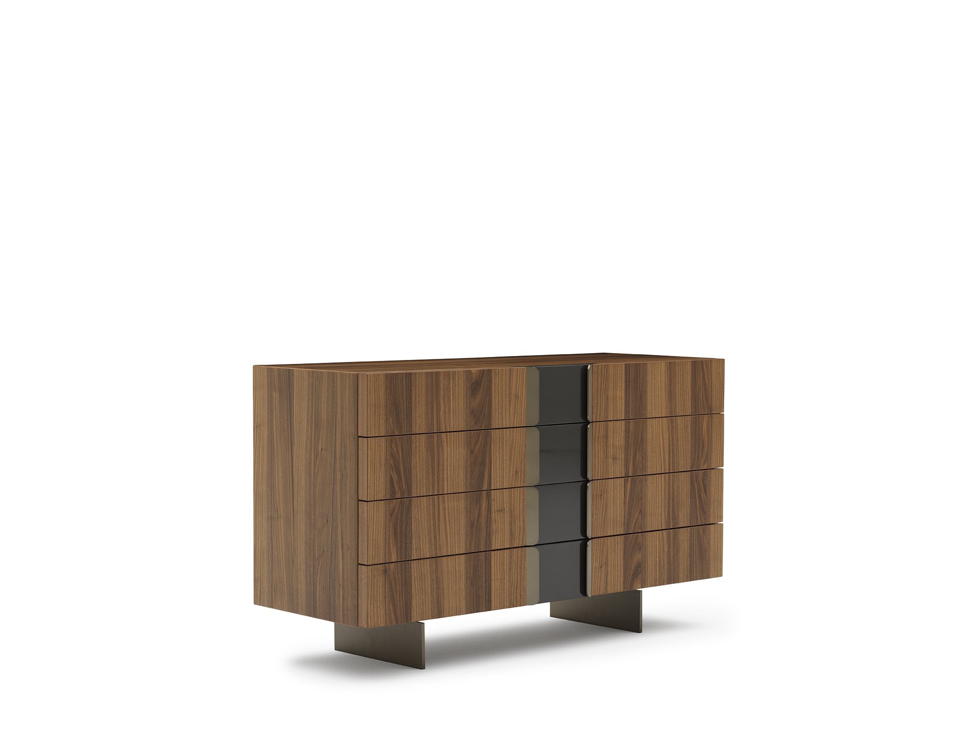 The stand-out feature of the Malay furniture range is the original design of the handles. A strip of metal protrudes from the door of the cabinet to emphasise the care taken over the details and the quality of the materials: from the wood with vertical veneer on the doors to the top in either marble or wood; from the lacquered finish of some of the panels to the elegant design of the metal struts of the supports. A unique and original design for a series of furniture featuring clean, modern lines.
