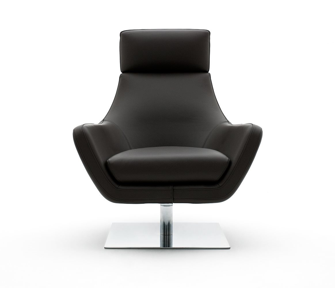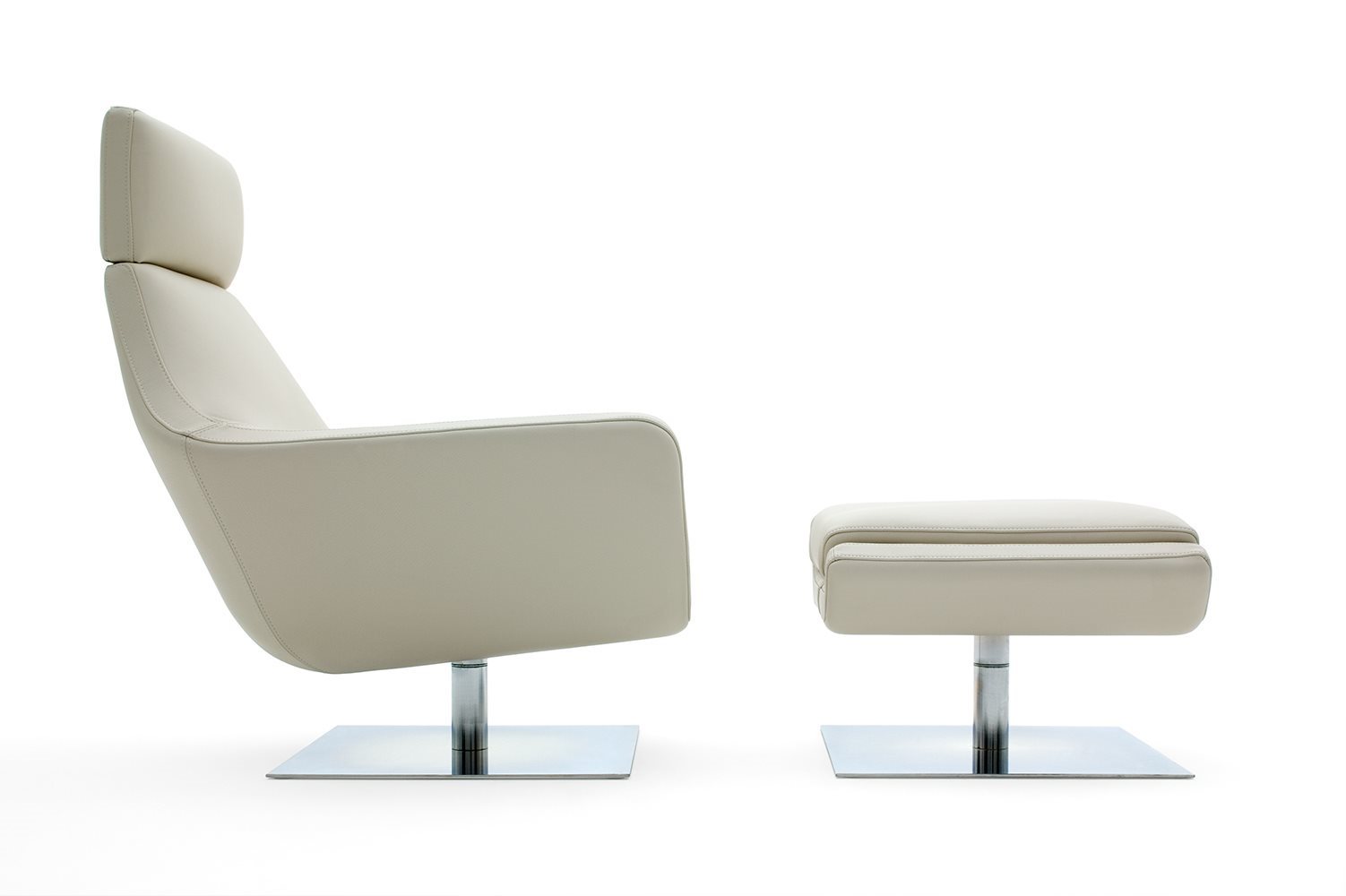 Swivel armchair and swivel pouf. Chromium plated swivel basement.