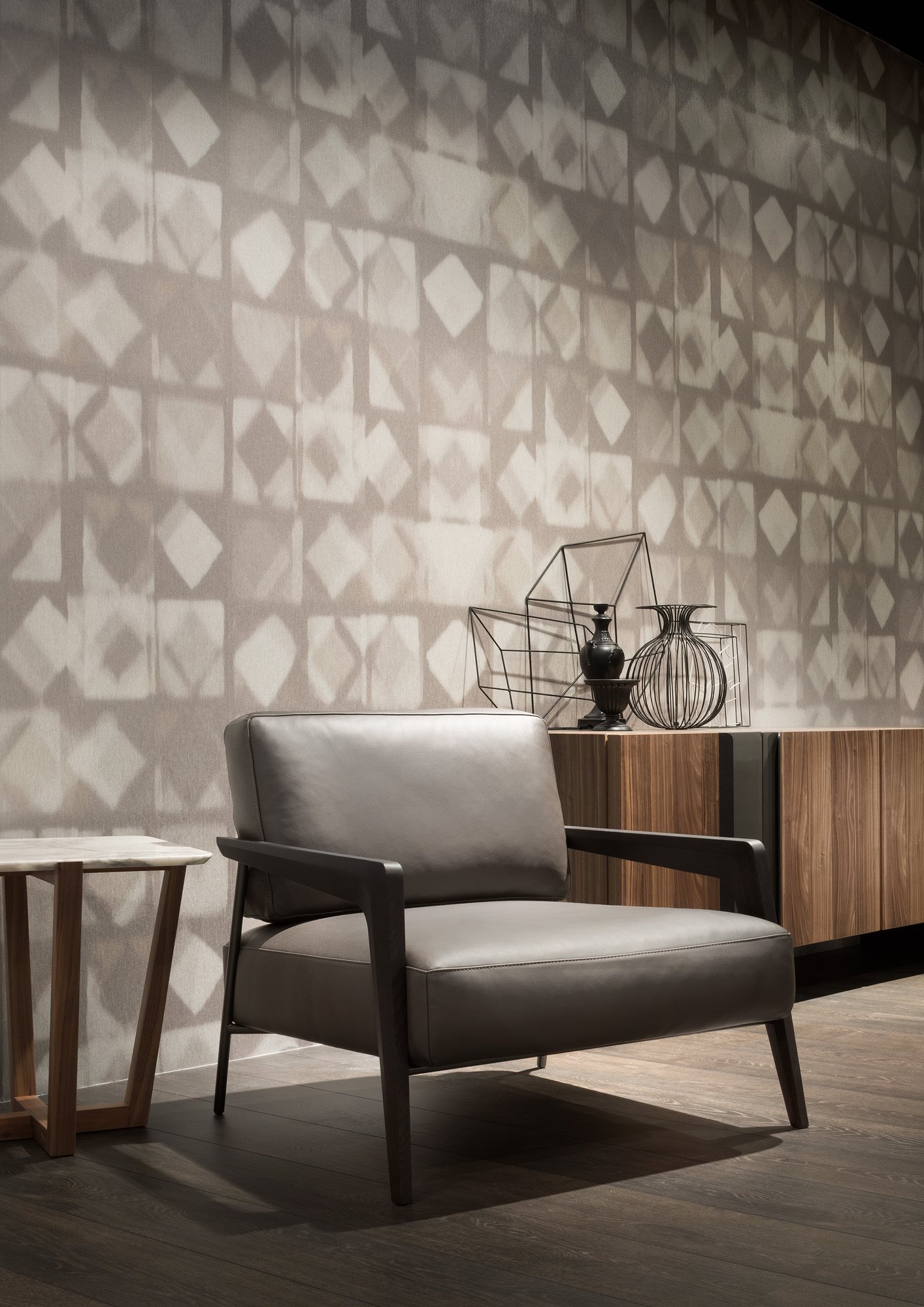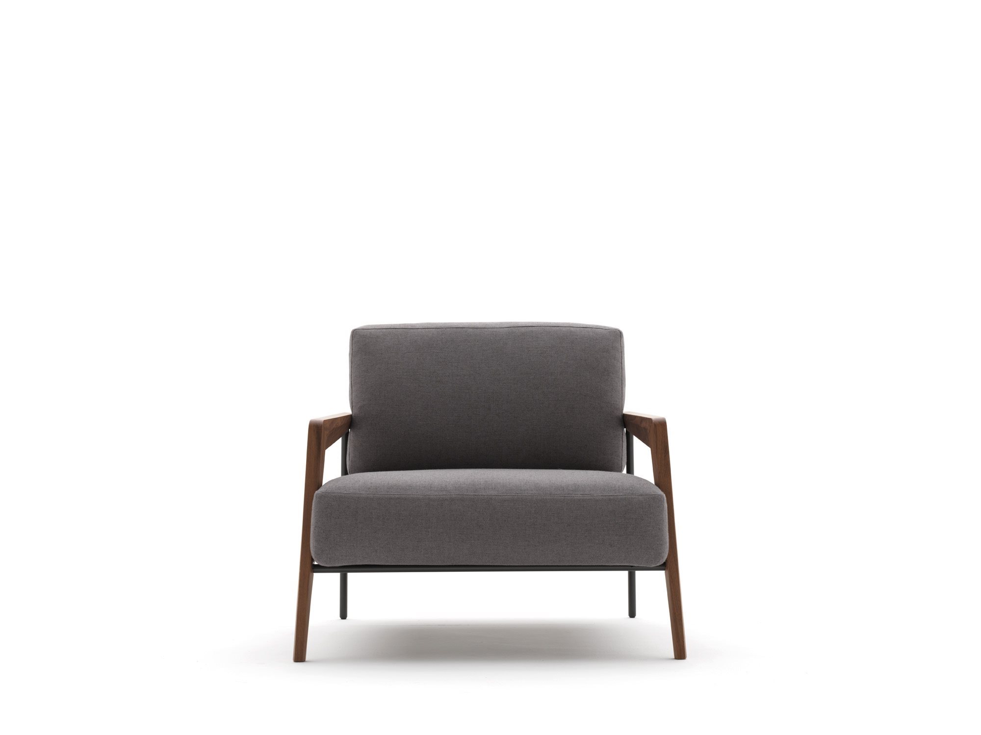 A roomy, spacious armchair, Cecile features wooden armrests which lend an air of authority and assertiveness to this armchair where formality is fused in a pleasant contrast with the incomparable softness of the upholstery. The metal frame which is combined with the wooden feet brings an extra touch of class.