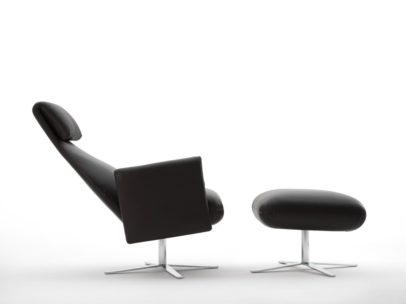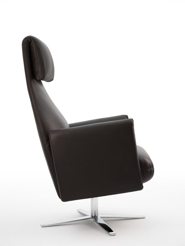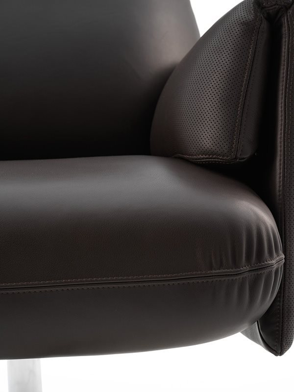 In the project for the Senator reclining armchair, two languages are spoken on different levels: an upper one that is eloquent and comfortable, denoted by the generous padding, leather and the characteristic “bag” on the backrest and arms, and a lower one which is industrial, defined by the steel base supporting the frame. A contemporary chair firmly rooted in tradition and quality.