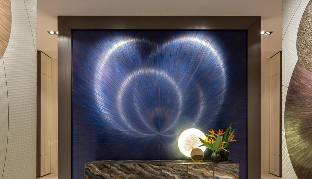An explosion of pure light in the thousand drops of mother-of-pearl inlay, on a background as blue as the night or brown as the earth