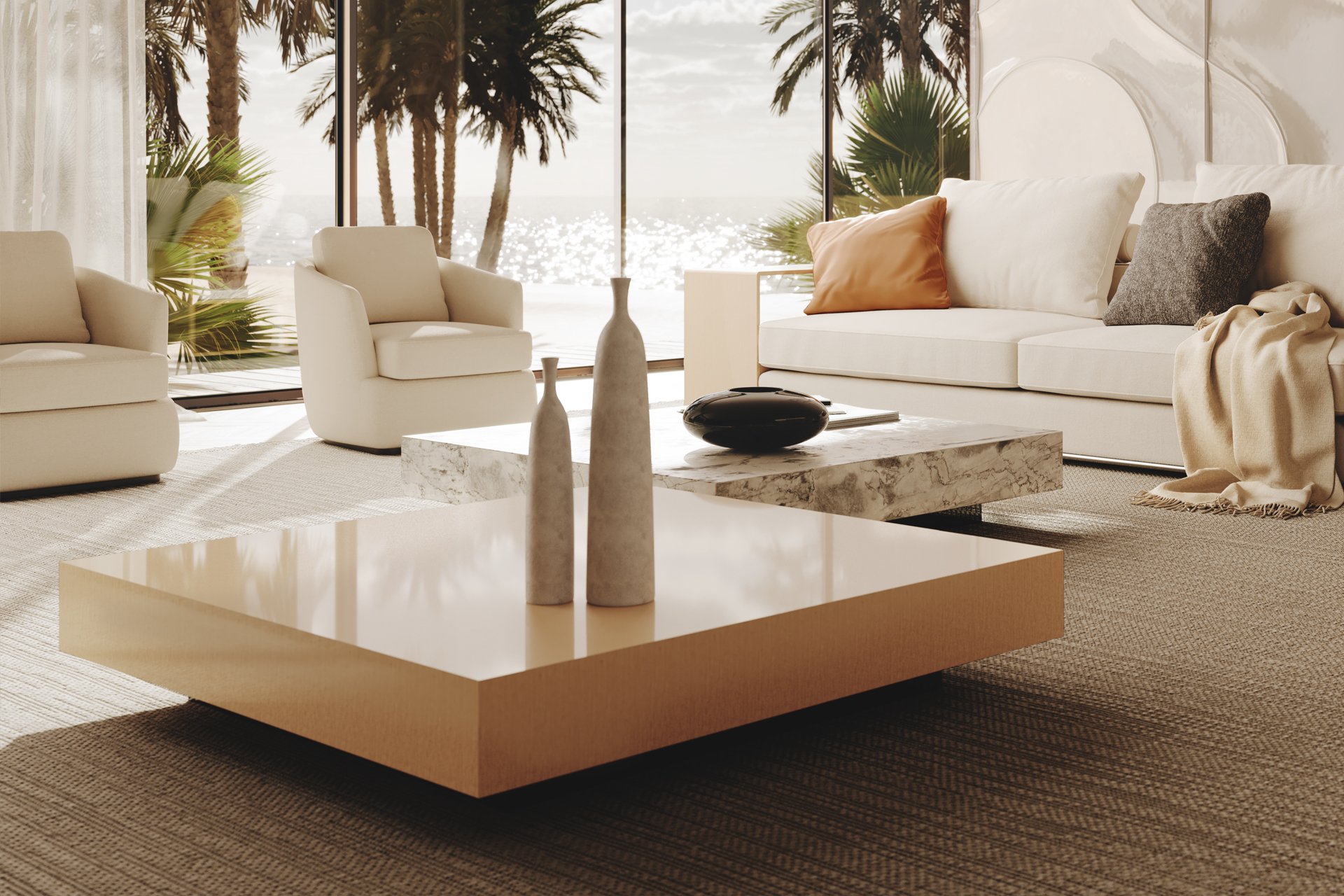 Essential lines and attention to detail, in different finishings. Ideal surface for a neat style.