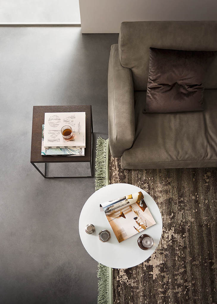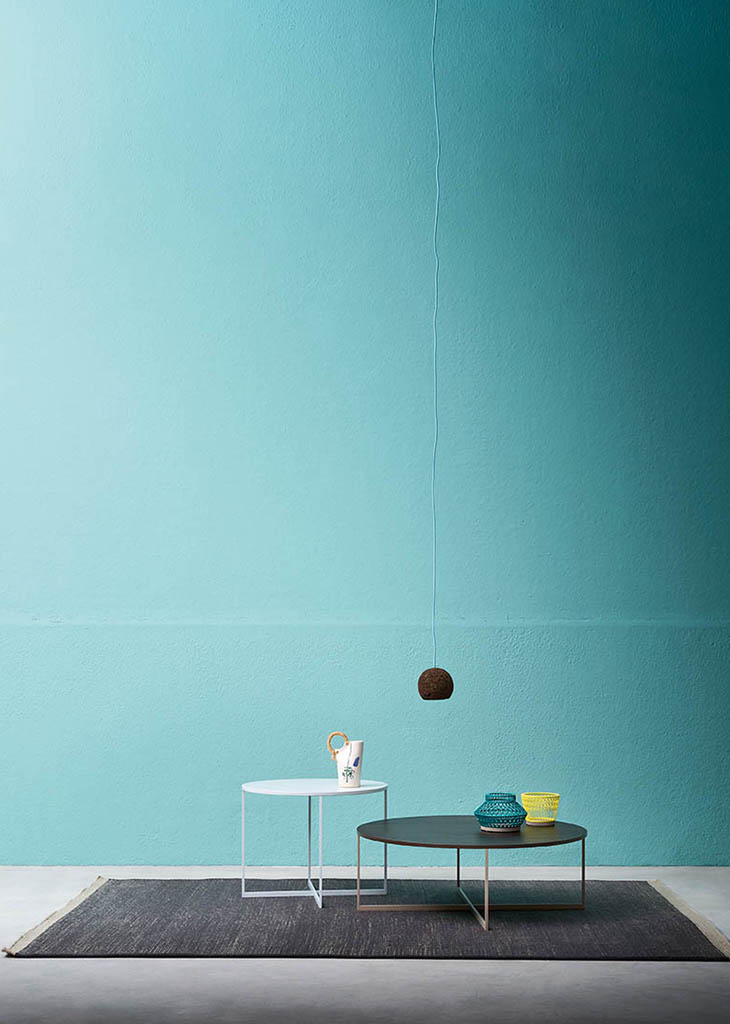 The Moca round occasional table has a painted metal frame and a wooden top. Moca is available in two sizes.