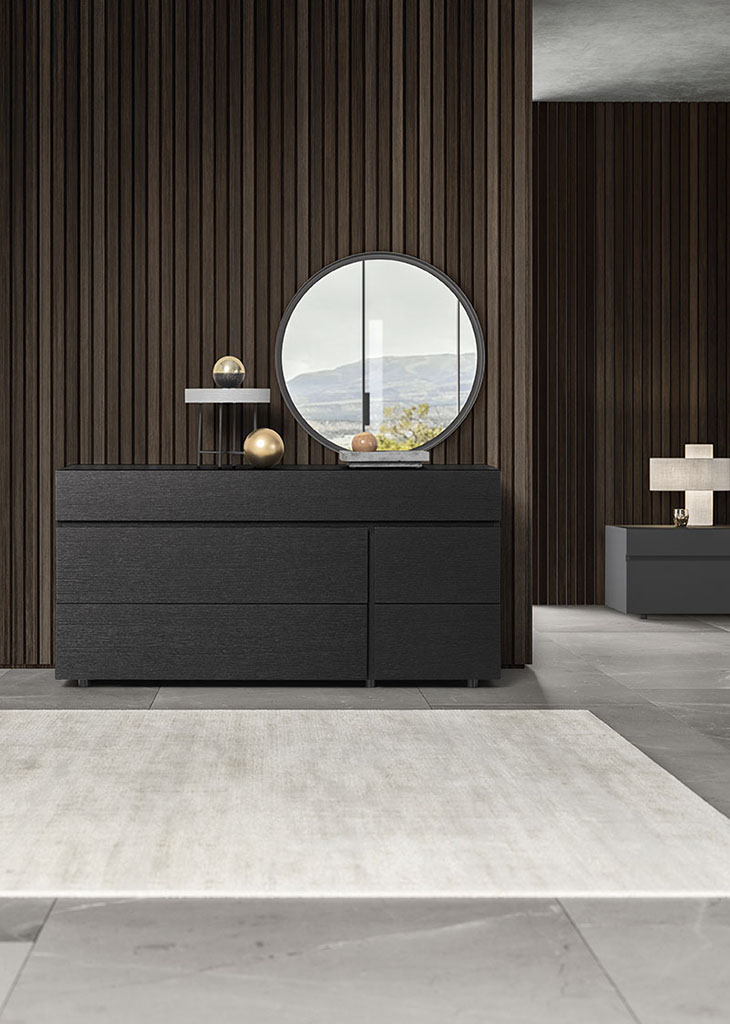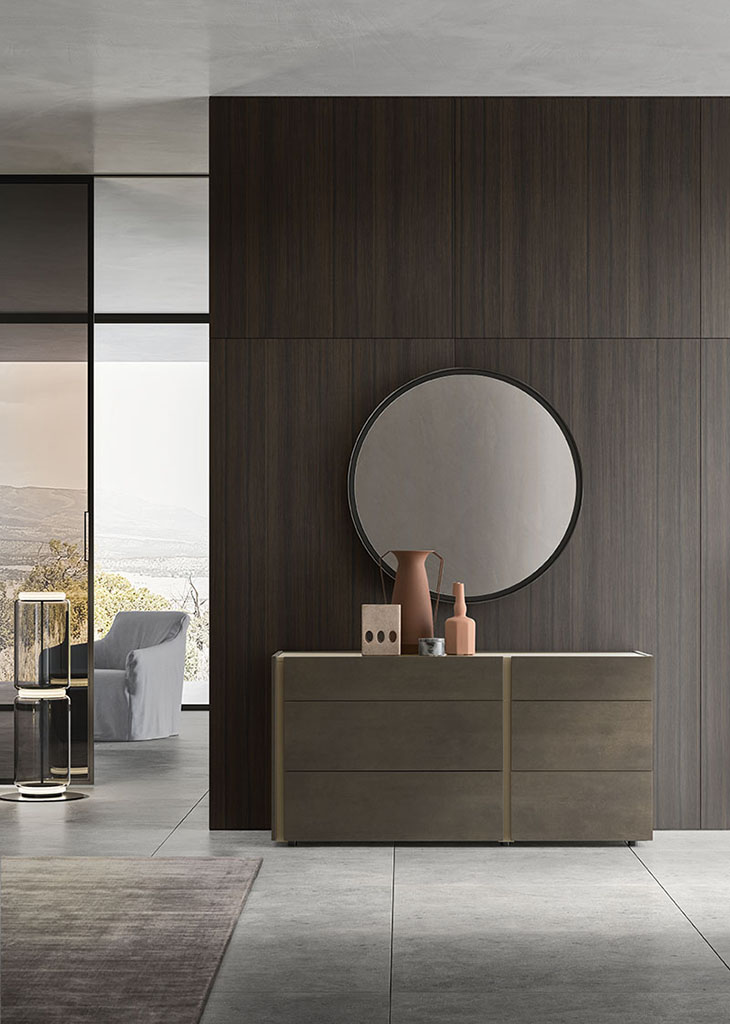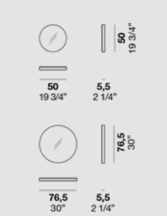 Disco mirrors, along with Esagona designer mirrors, look good in any room because of their frame in Moka Shine finish metal. The Disco model comes in three sizes.
