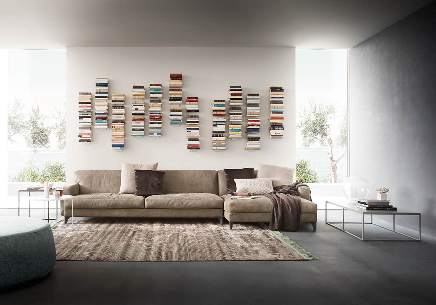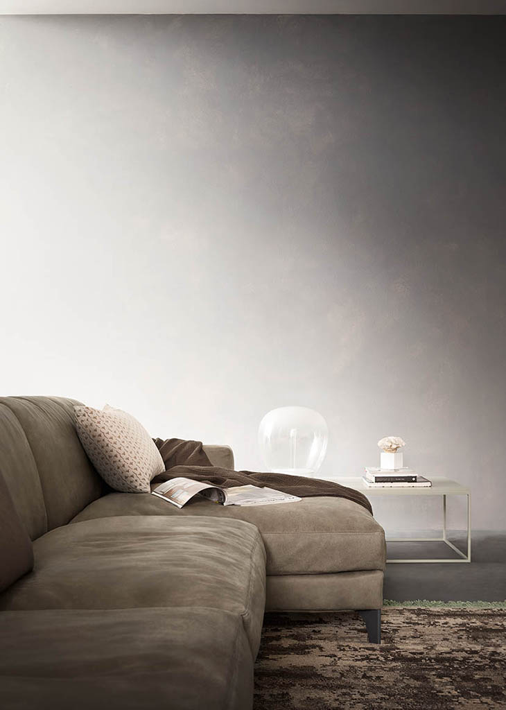 The Utah sofa has a structured shape, which stands out for the enchanting intersections between its seat cushions, seat backs and armrests. Resting on four stylish painted metal feet, its modularity is completed by corner units, chaises longues, armchairs and footstools.