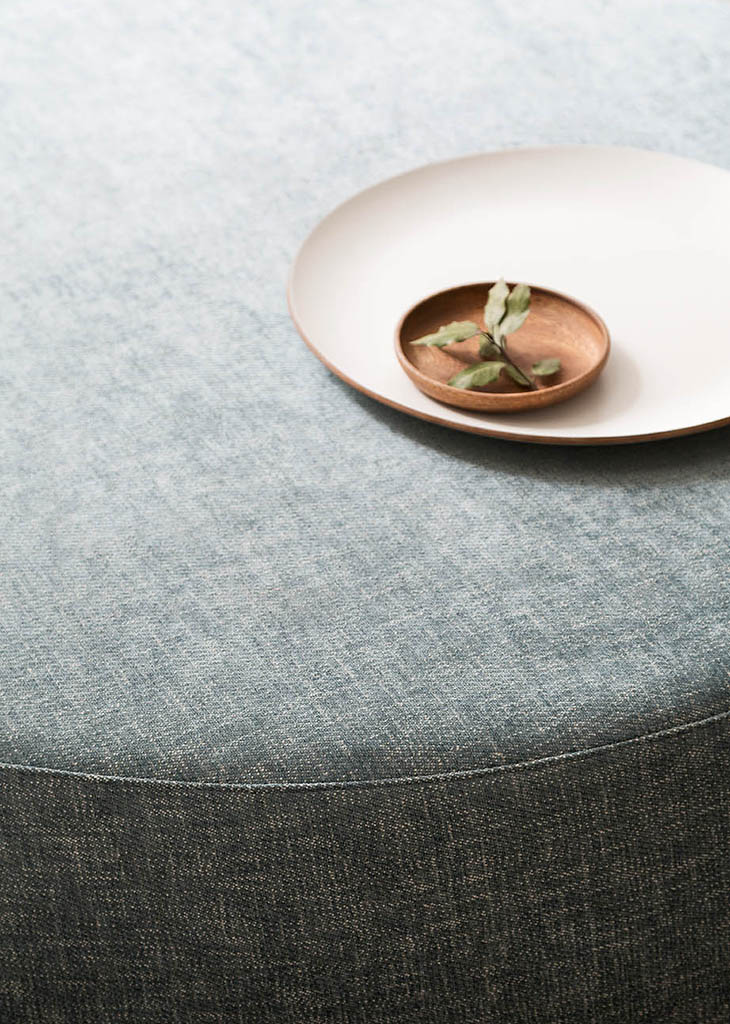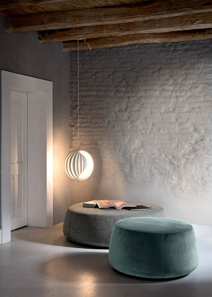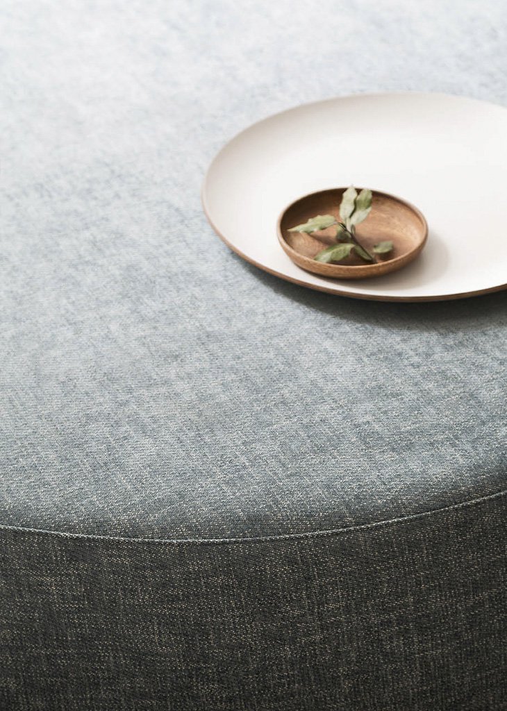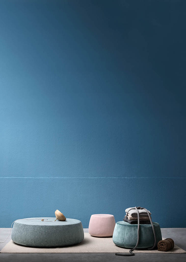 Denny is a padded footstool with a removable cover (in fabric and ecoleather versions), available in three sizes. It features rounded and tapered shapes, and can be used as either a seat or a practical surface to put things on.