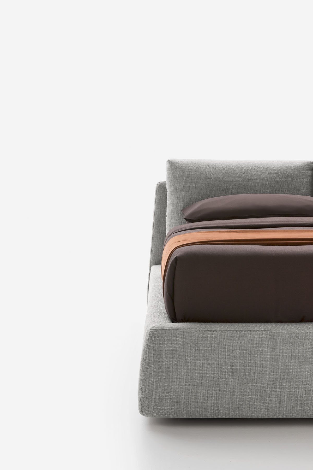 Featuring unusual, raw-cut stitching in the leather version which defines its edges, the Milano upholstered bed is both elegant and original. The soft cushions of the headboard rest on each other, creating a pleasing play of levels. This modern upholstered bed comes in a wide range of sizes, including with storage.