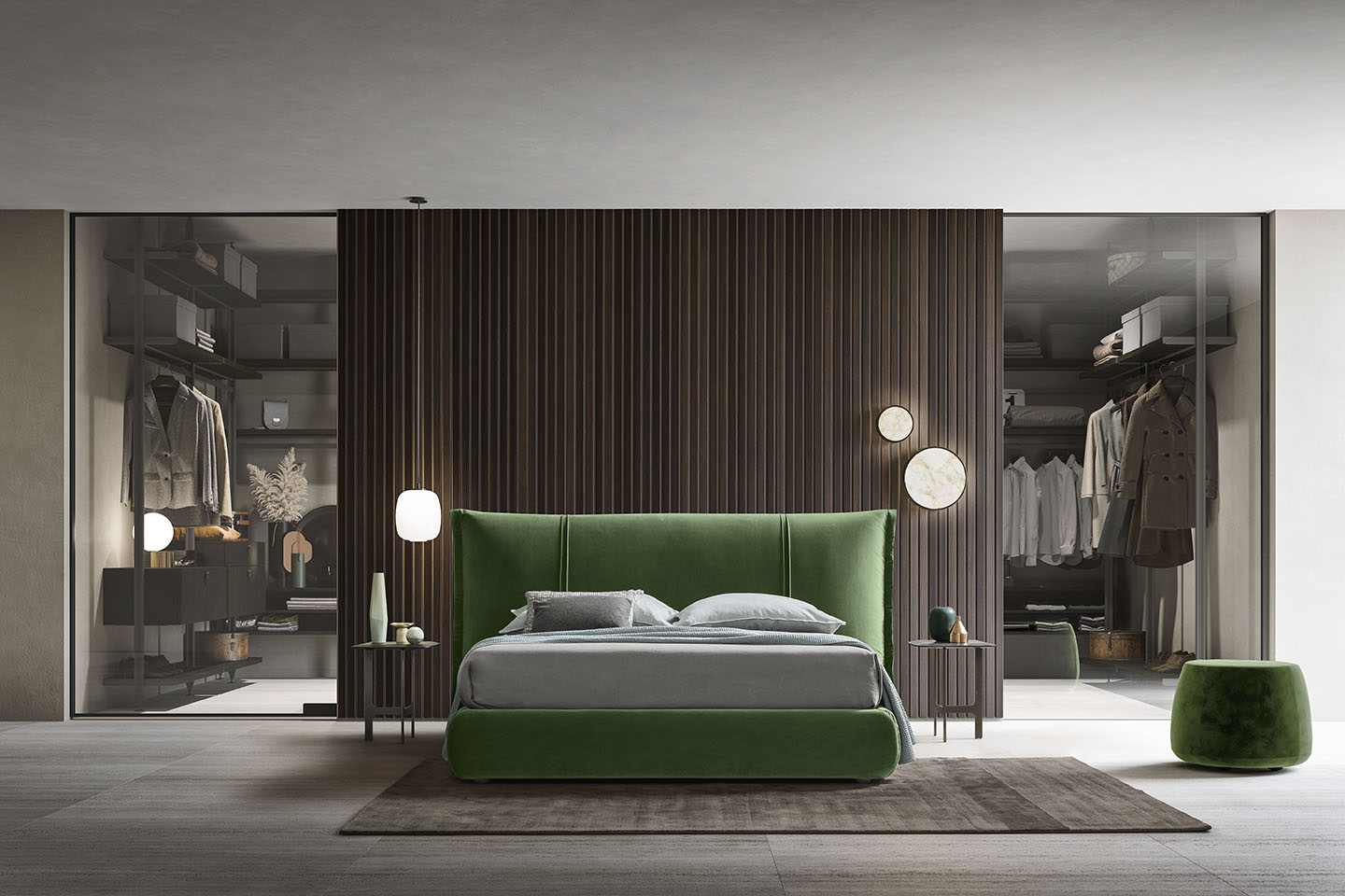 Artur is an upholstered double bed with padded headboard and divan platform. It stands out because of the vertical stitching on the frame members and headboard which creates a pleasing aesthetic effect.
