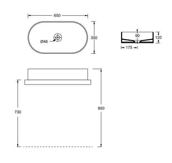Hide washbasin 65×35臺盆