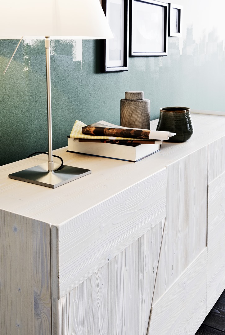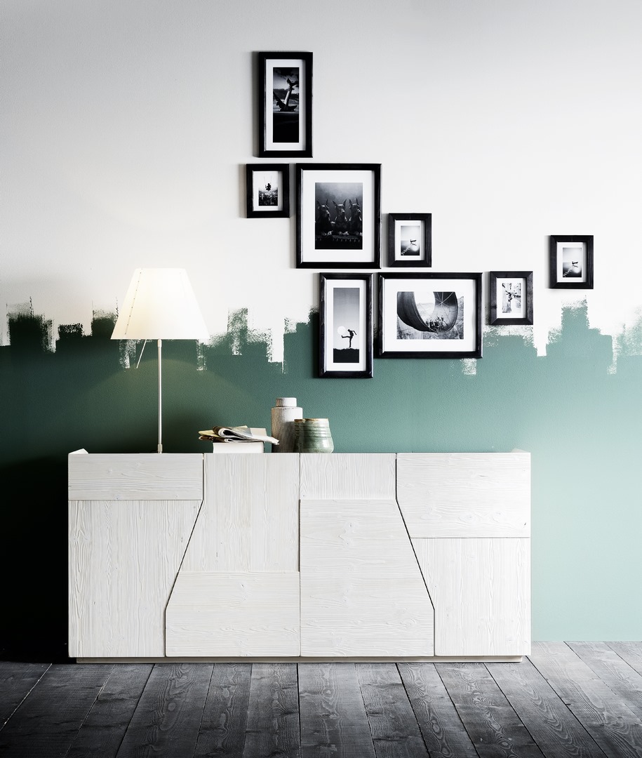 Easy sideboard with four hinged doors in Bianco spruce finish.
