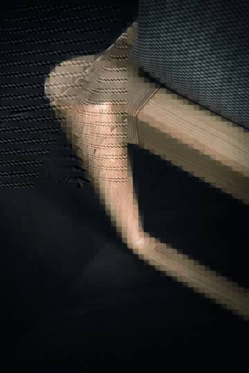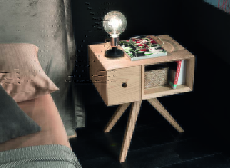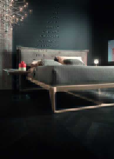 Bed Pegaso with padded headboard and wooden bed frame type 3, in alaska solid oak finish.