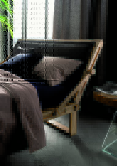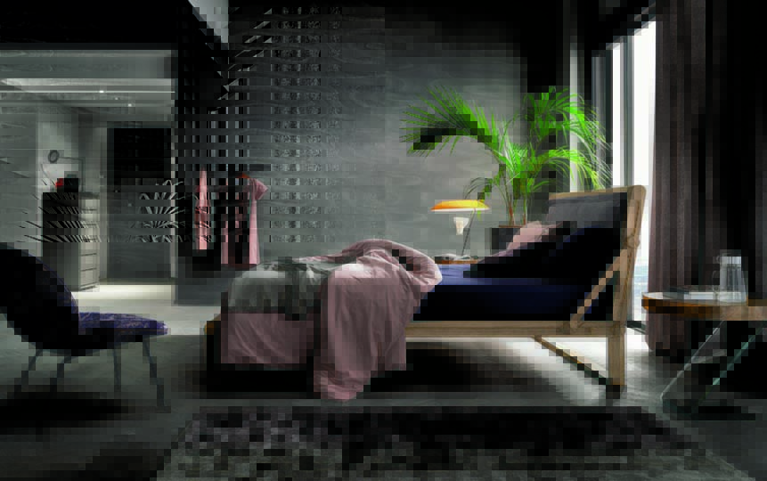 In the picture it is visible with a padded headboard, covered with a T104 linen blend fabric.