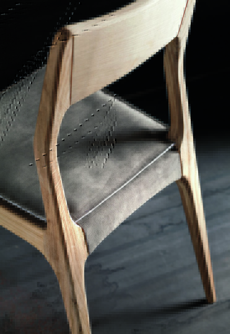 Nice chair is avaiable in oak wood or in walnut wood. In addition is possible to have the cushion in Novabuk fabric T40 and T41, which harmonizes with the chair as they are a single piece.