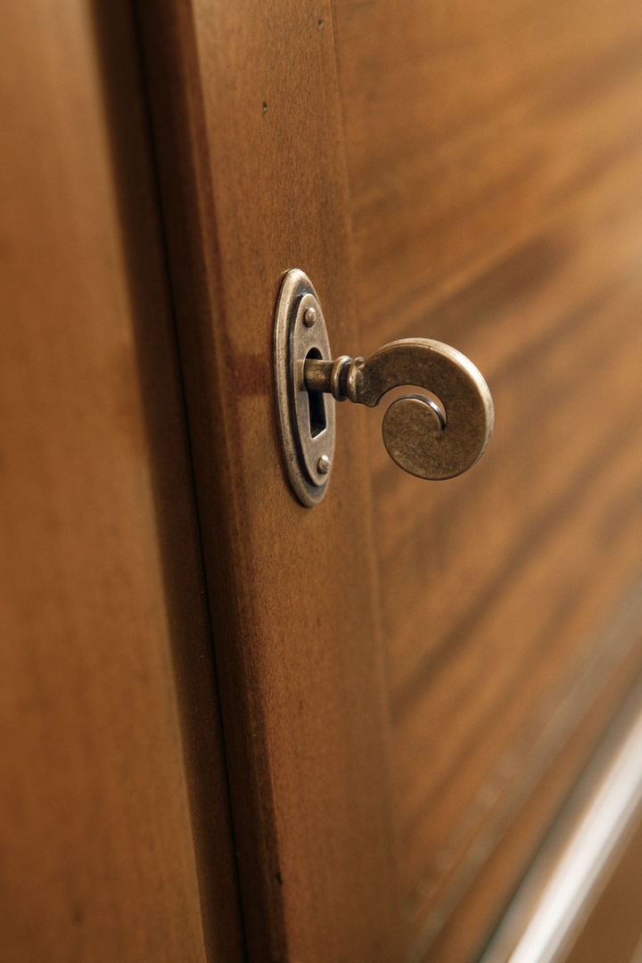 The sideboard is also available with three hinged doors, again with lock.