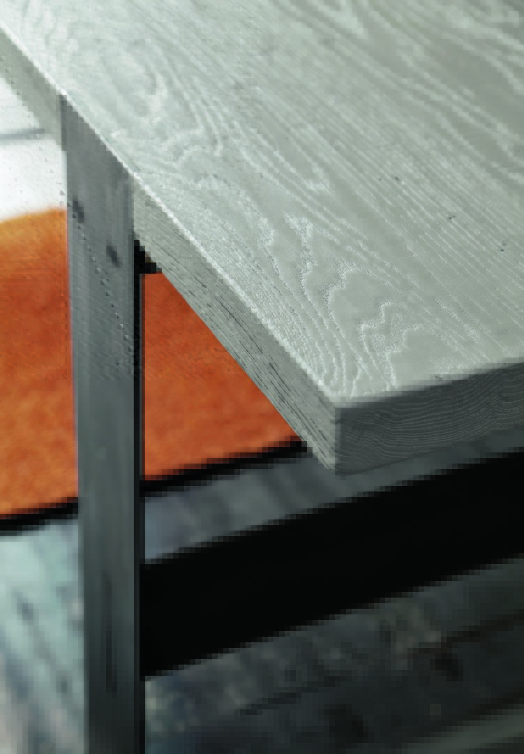 Parigi table in Visone sabbiato solid oak finish, with Super iron legs.