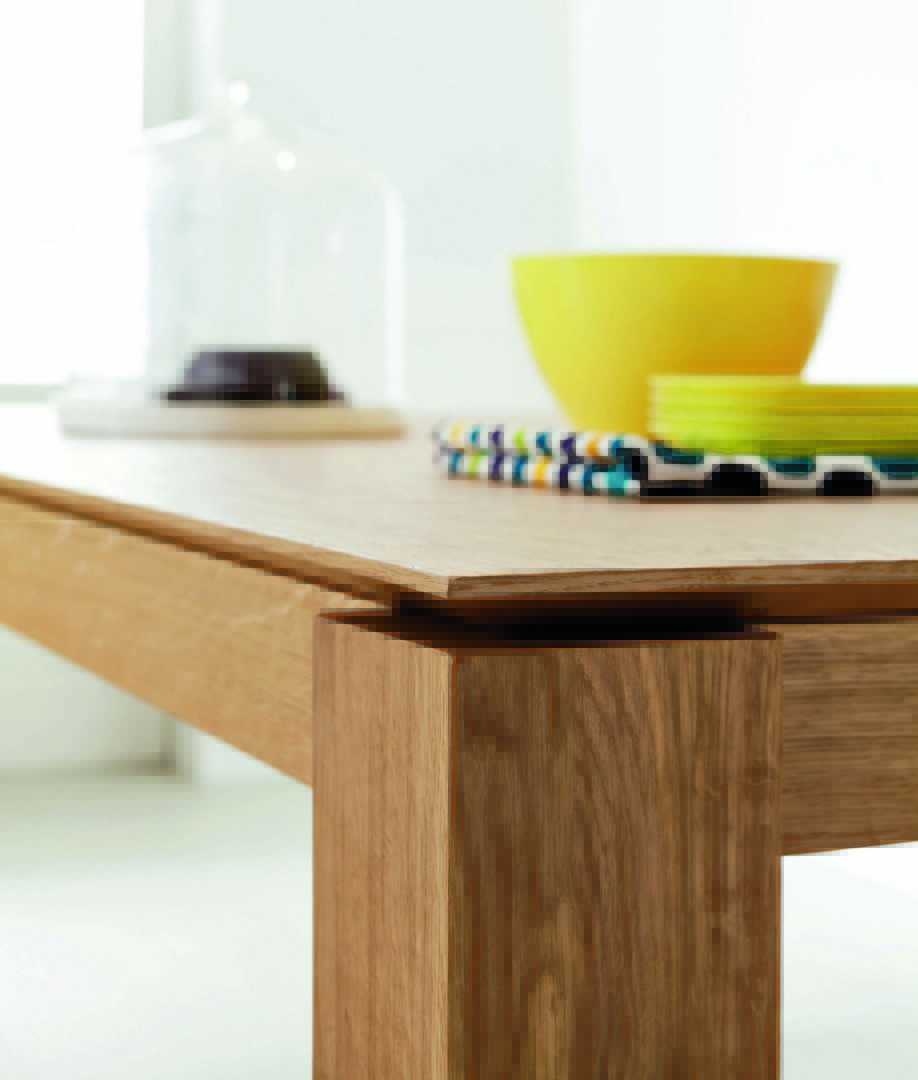 Santiago table extending in alaska finish.