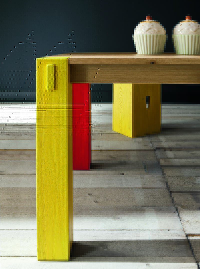 Stoccolma table, not extending, with top in Alaska finish and legs in Ral finish.