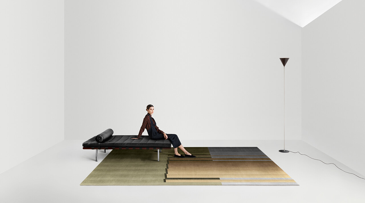 L’effetto della rifrazione attraverso il vetro ondulato è il leitmotiv della serie RD Braque, tappeti con forti richiami al mondo della progettazione architettonica. Un attento studio delle cromie e delle loro infinite declinazioni conferisce un effetto pittorico alla superficie di questi tappeti, realizzati in lana neozelandese annodata a mano.