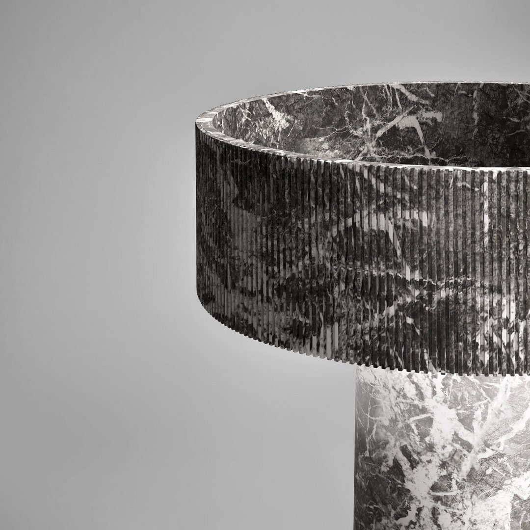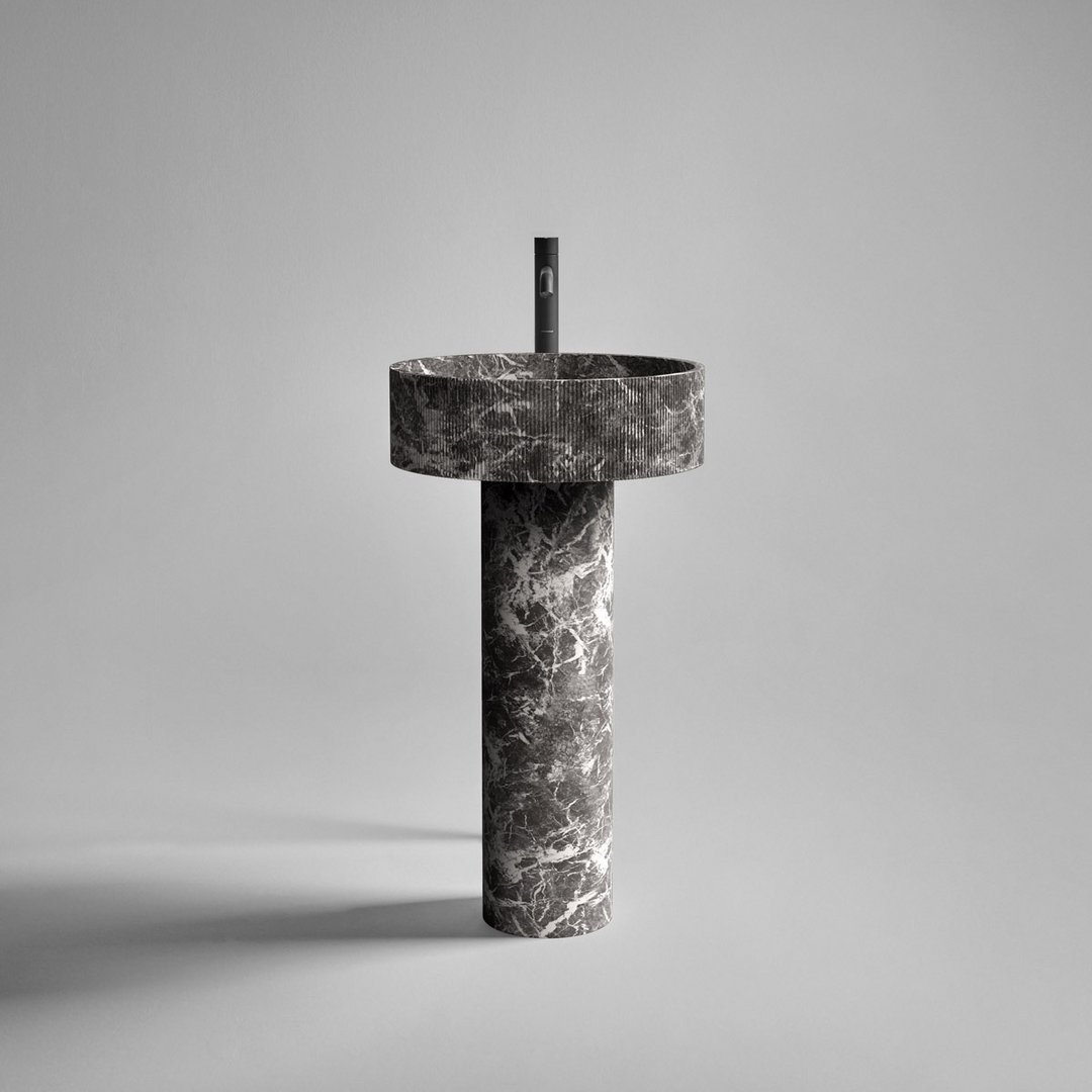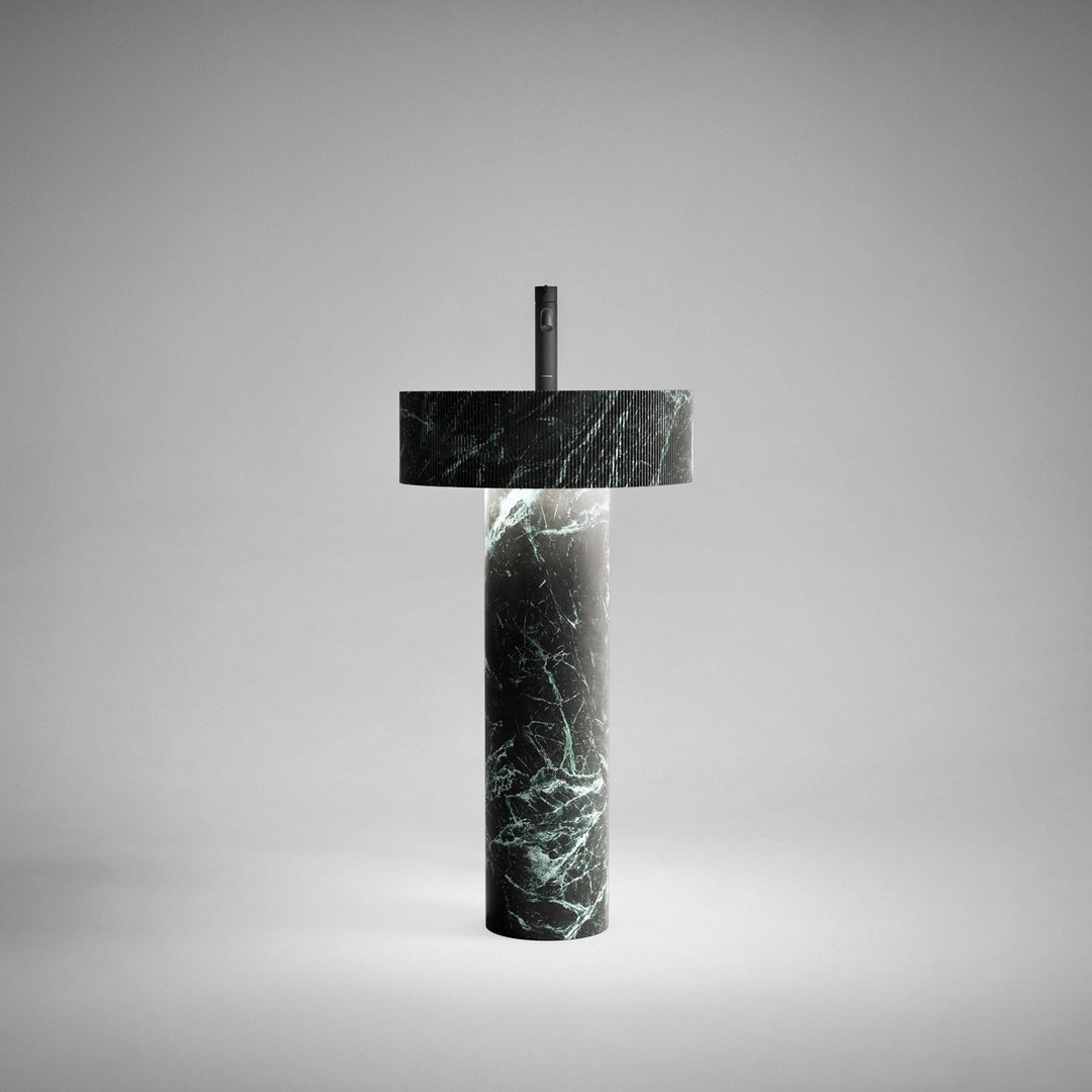 é una variante semplificata del lavabo Flow. Un’alternativa più focalizzata sulla funzionalità d’uso pur mantenendo inalterate le sue caratteristiche di purezza ed essenzialità formale. E’ composto da una combinazione equilibrata di due volumi cilindrici in marmo o pietra: la sottile colonna centrale con finitura levigata e la vaschetta caratterizzata da fitte scanalature verticali che rendono vibrante la sua superficie. Disponibile anche con illuminazione integrata.