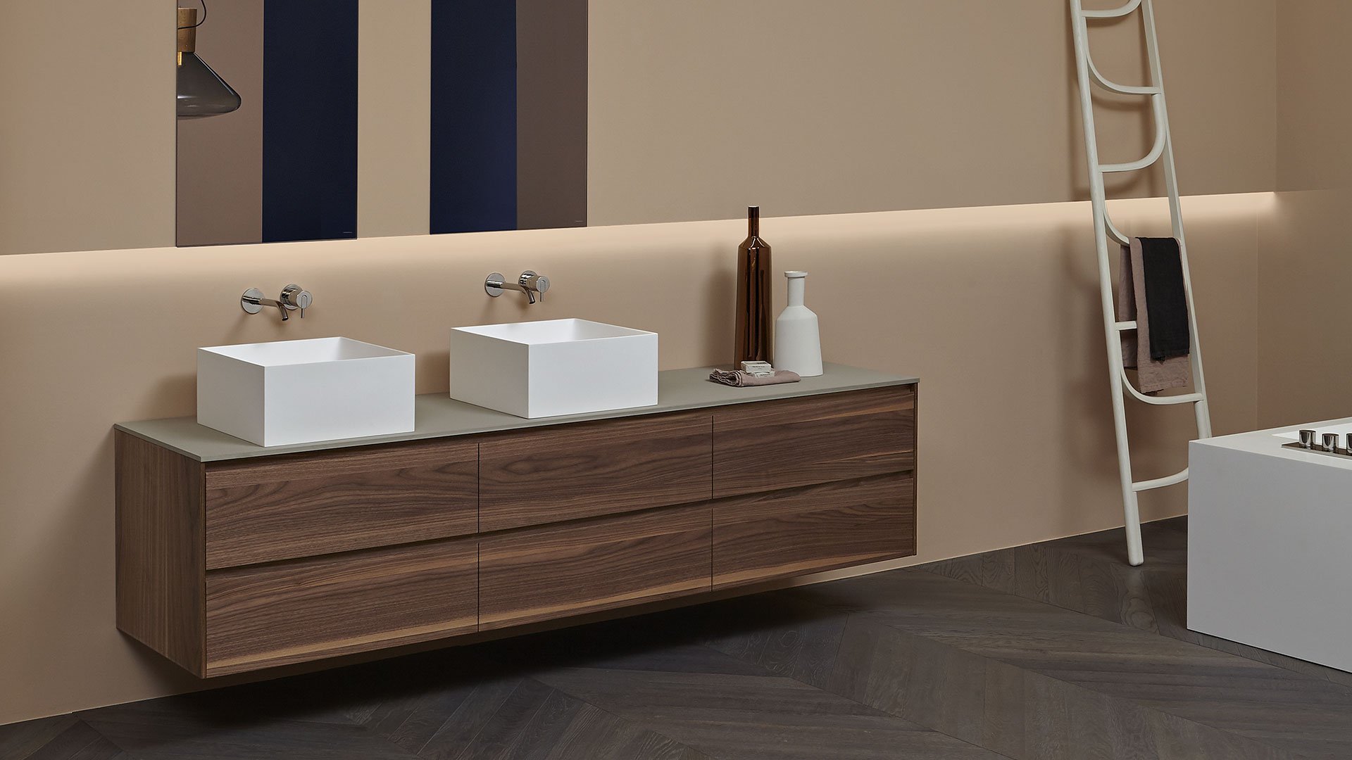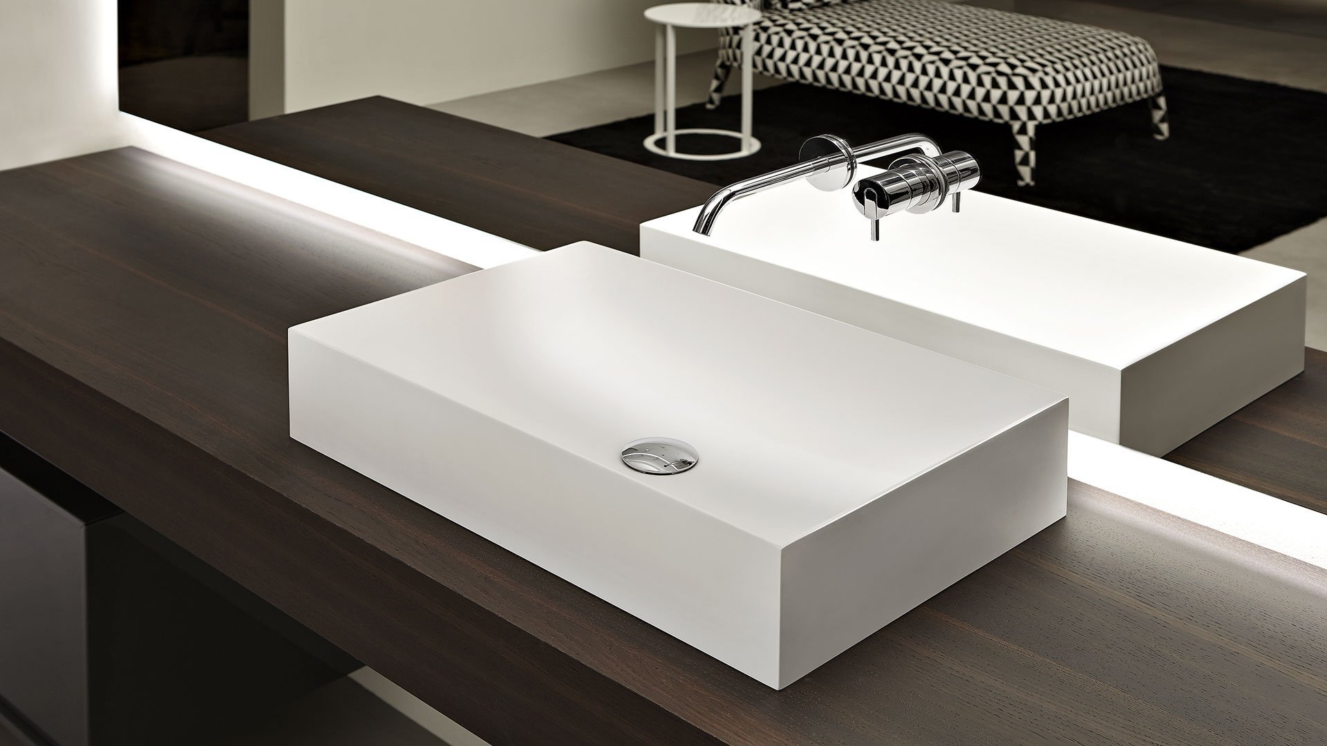 Square top or wall mount Flumood sink, complete with drain pipe fitting and open plug. Can be lacquered externally.