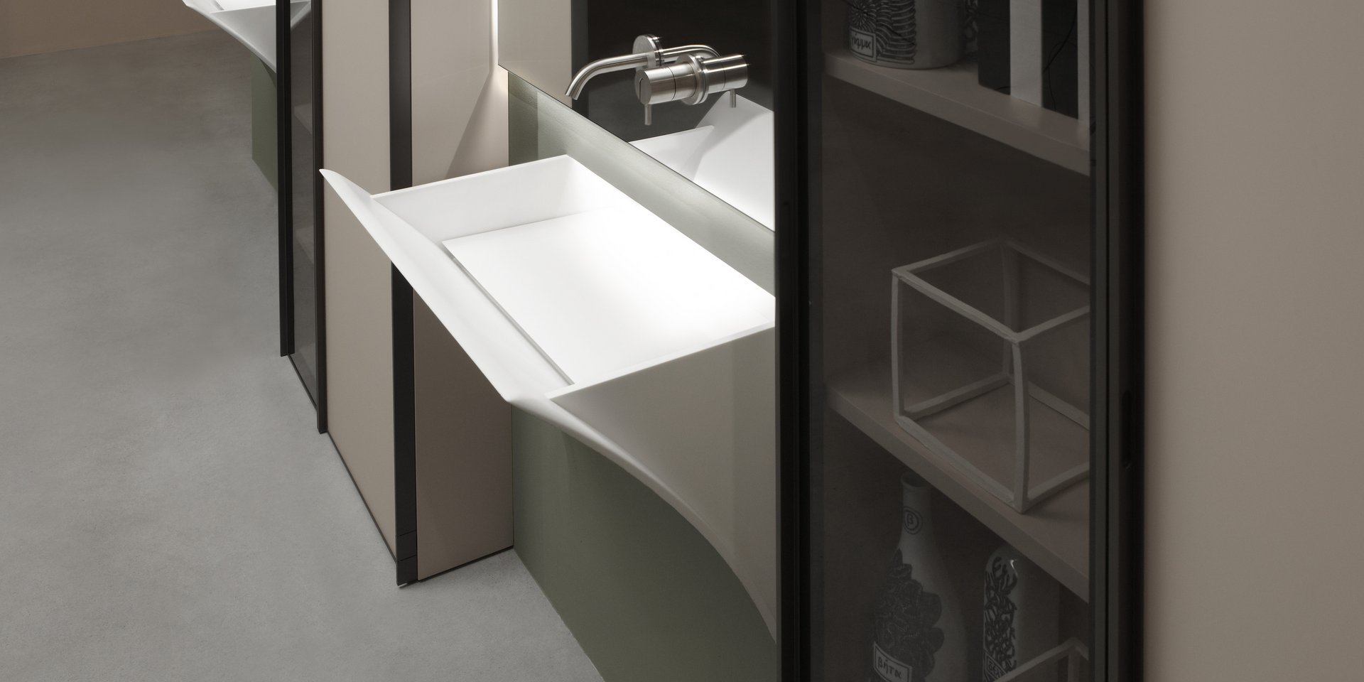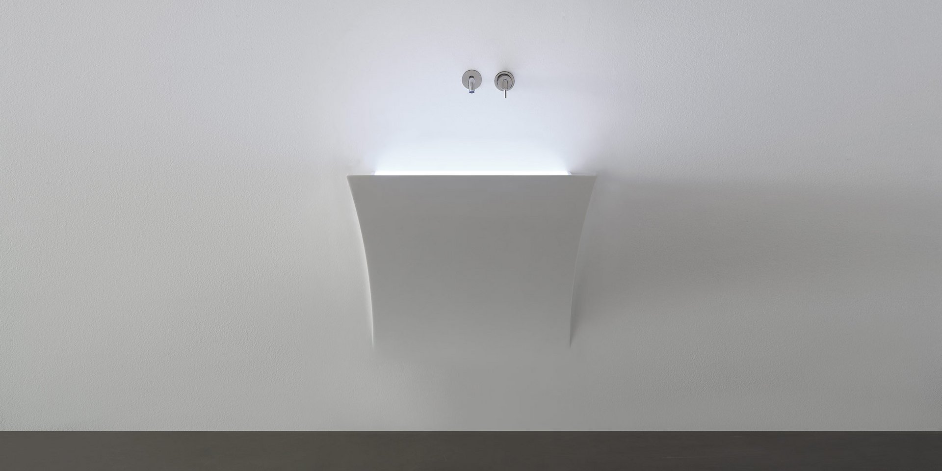 Encased Corian sink with or without led lighting, complete with inspectable drain, trap and flexible hose.