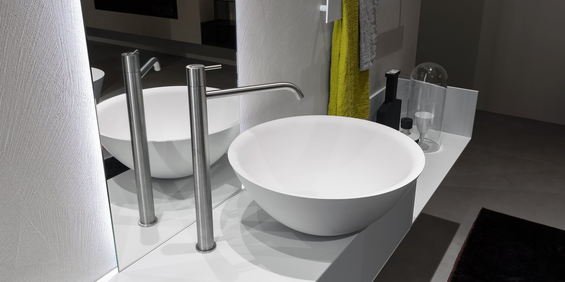 Round top mount Flumood? sink complete with drain pipe fitting and open plug, that can be lacquered externally.