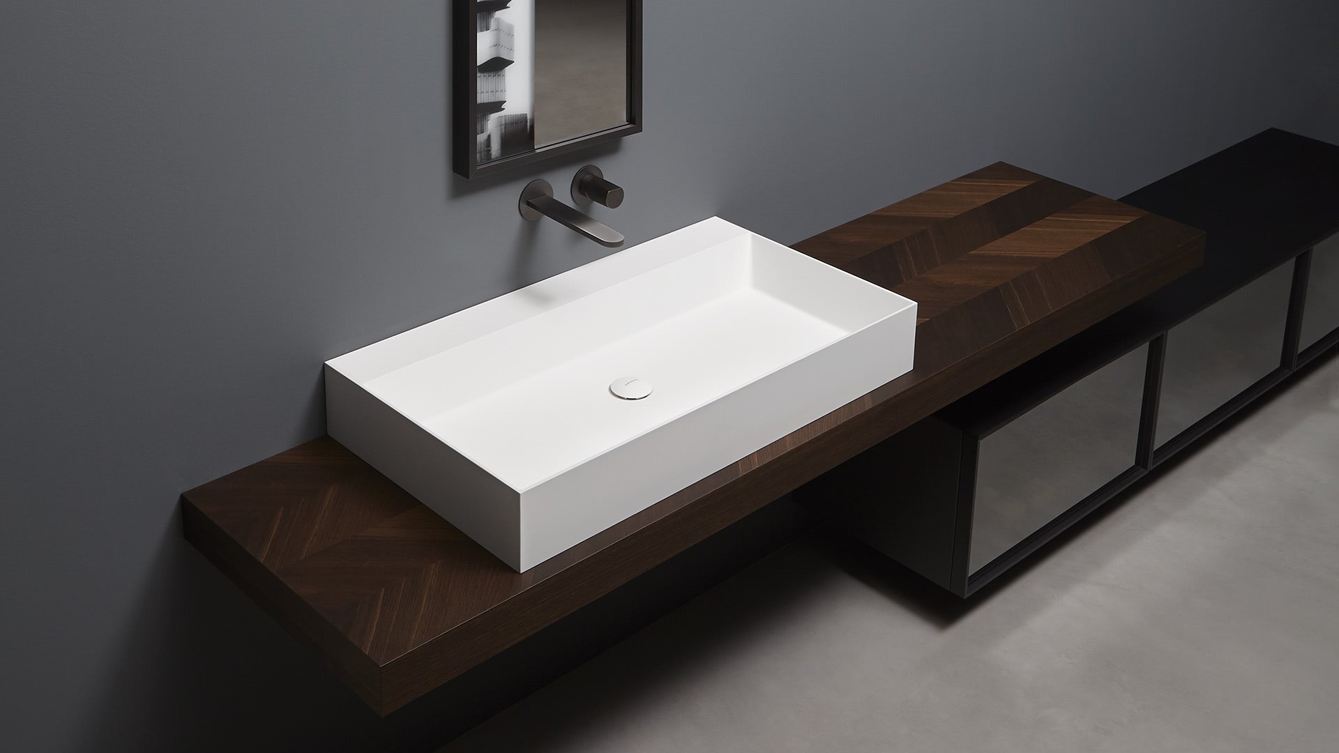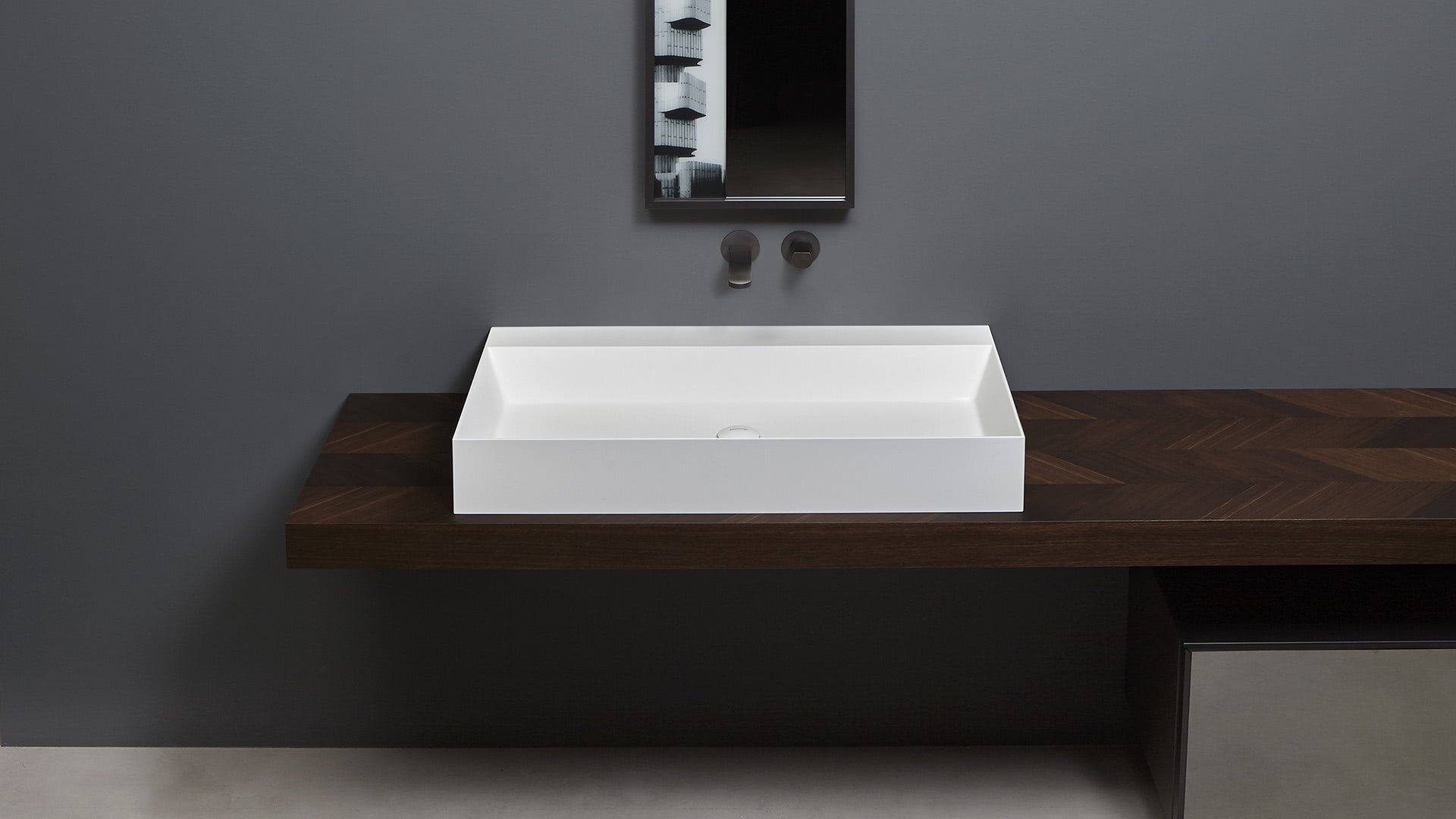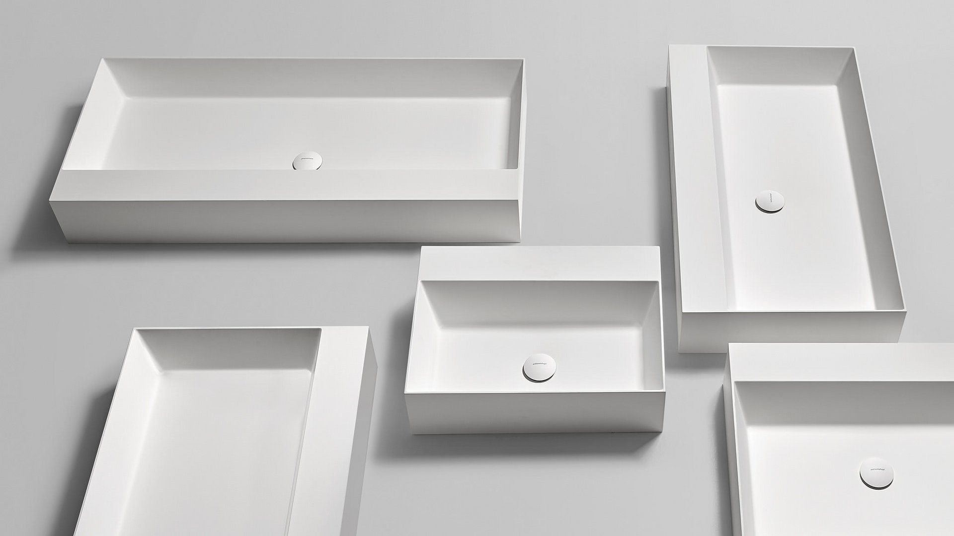 Rectangular top mount or wall mount white or colored Flumood sink complete with drain pipe fifitting and open plug.