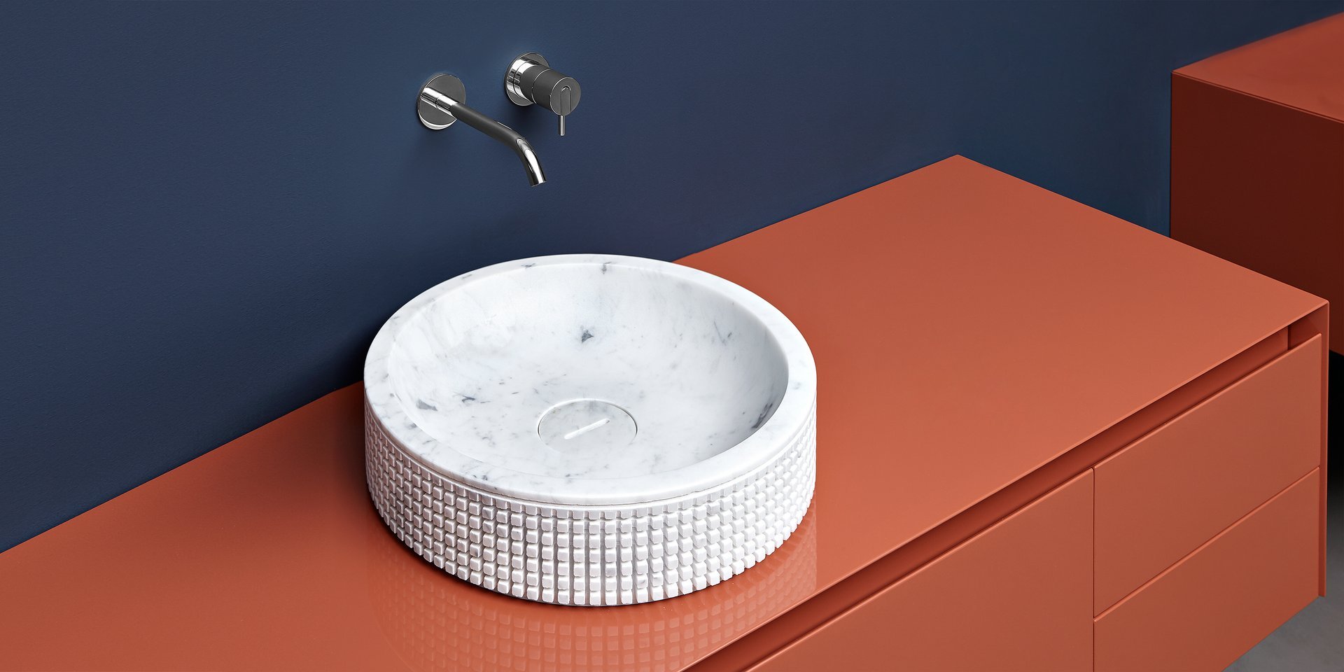 Round top mount stone sink complete with drain pipe fitting and open plug.