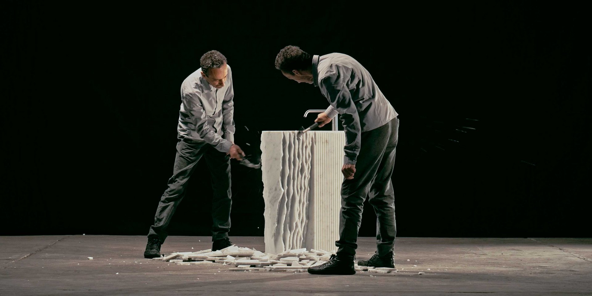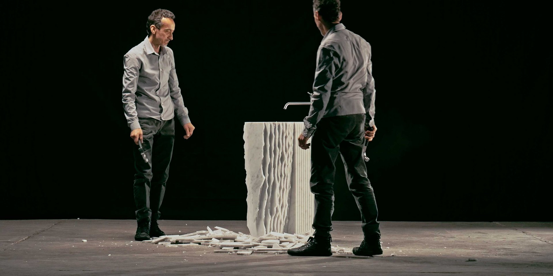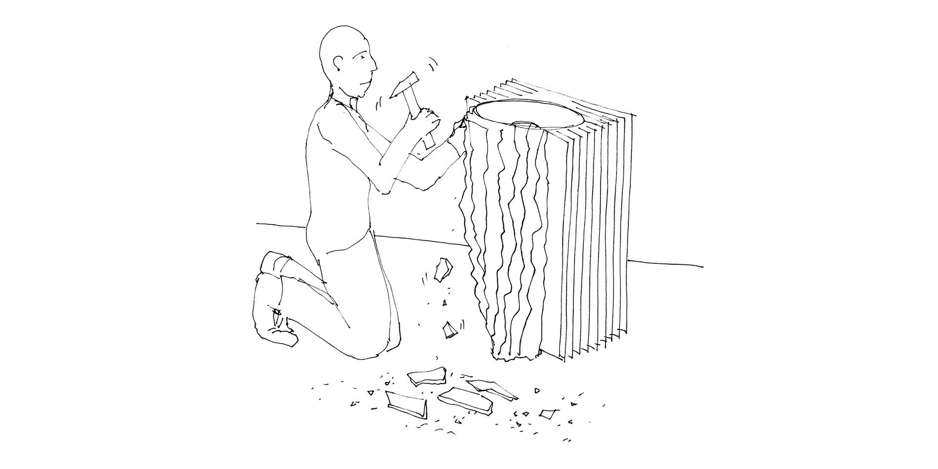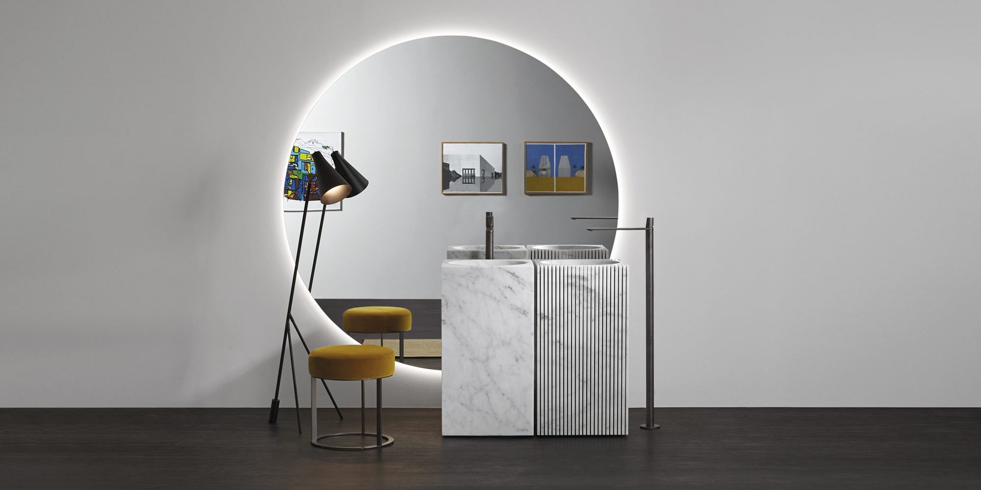 Freestanding stone sink, complete with drain pipe fitting and open plug, trap and flexible hose.
