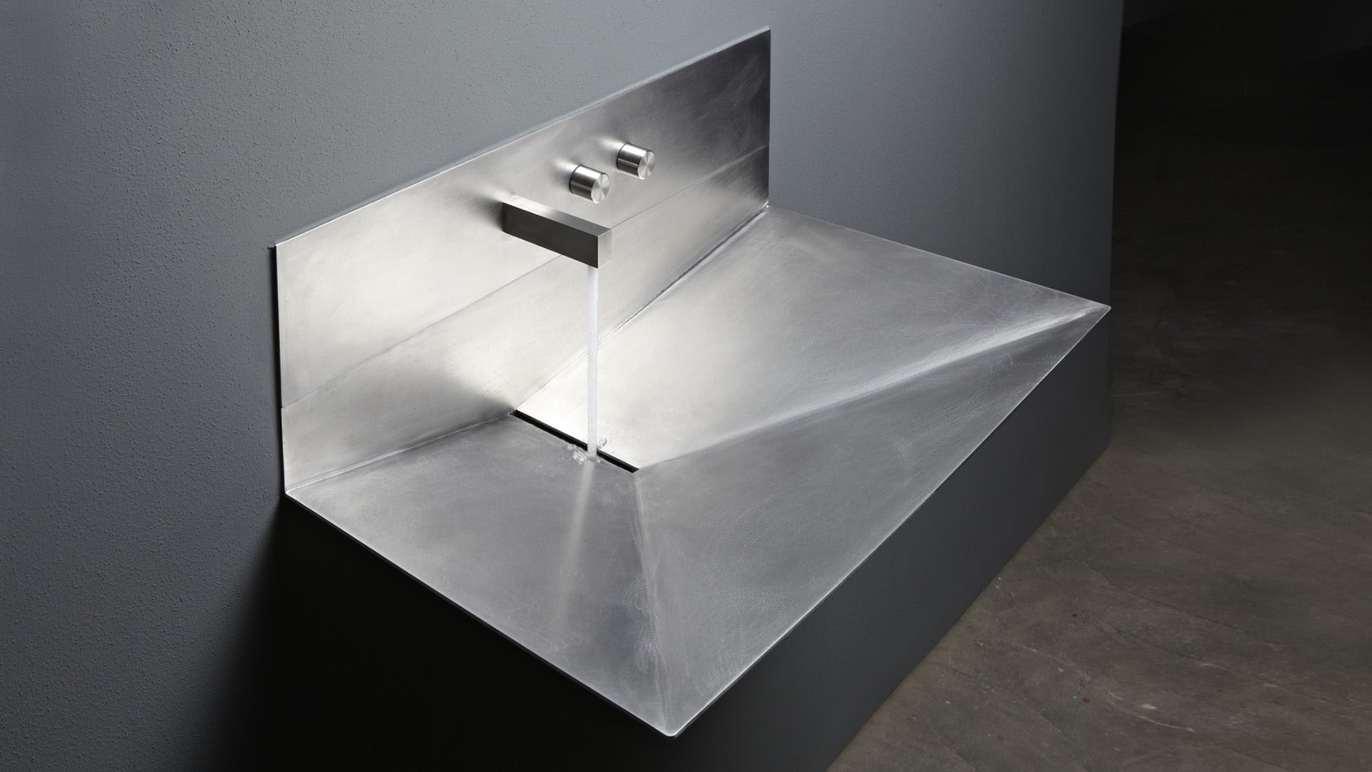 Rectangular wall mount Stainless Steel sink, complete with tap, drain pipe