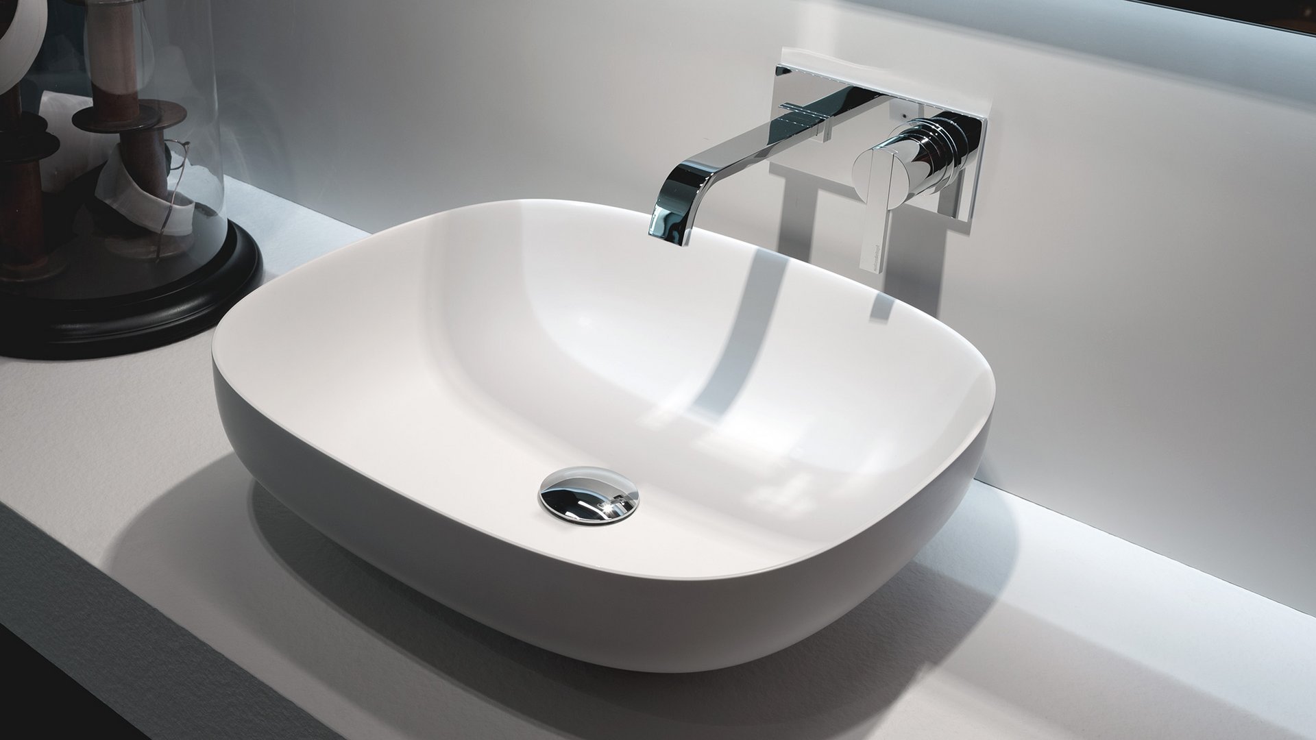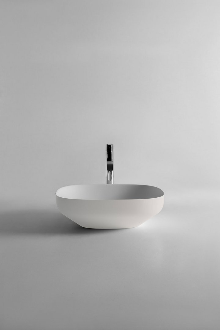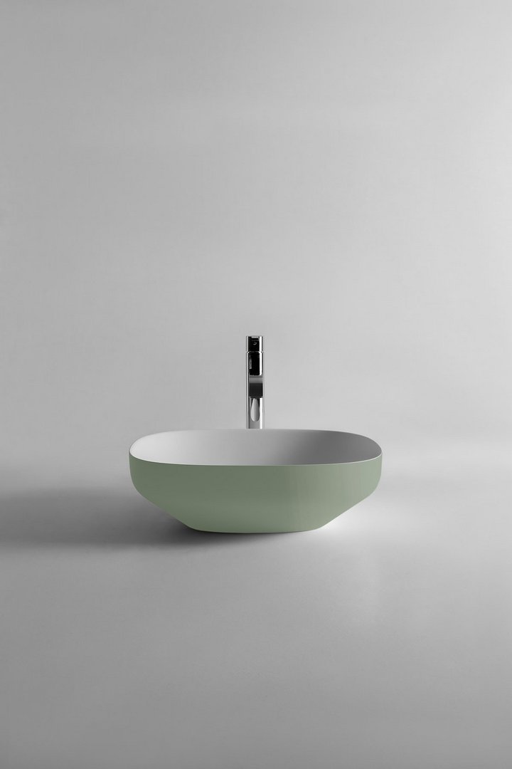 Oval top mount Flumood? sink complete with drain pipe fitting and open plug that can be lacquered externally.