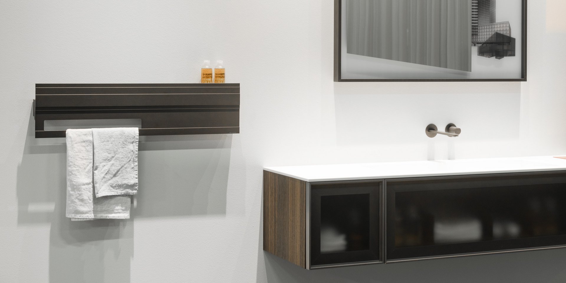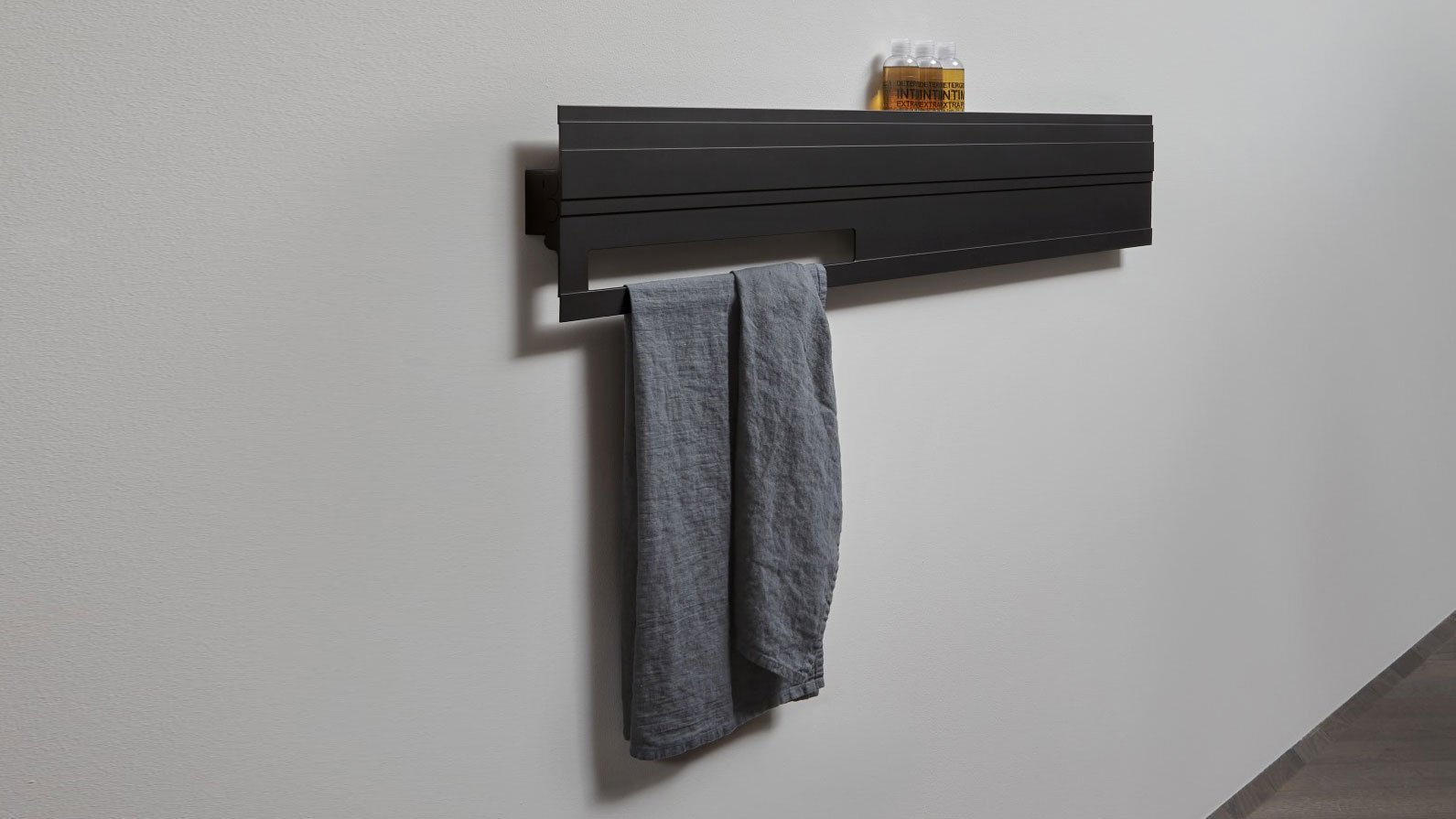 Horizontal aluminium designer radiator, electric version, complete with towel holder and programmable thermostat, Brown or lacquered embossed as per our colour chart.