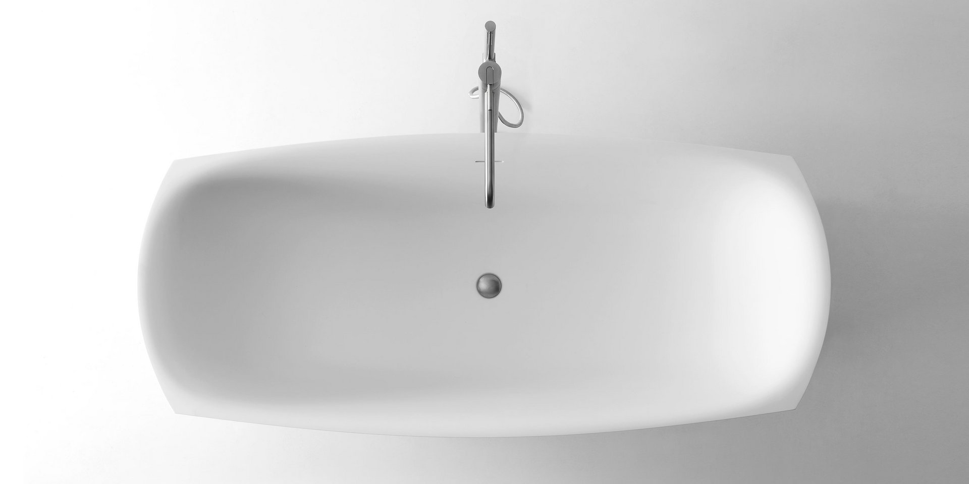 Rectangular Cristalplant bathtub with feet, complete with drain with pressure plug, siphon and flexible tube, that can be lacquered externally.