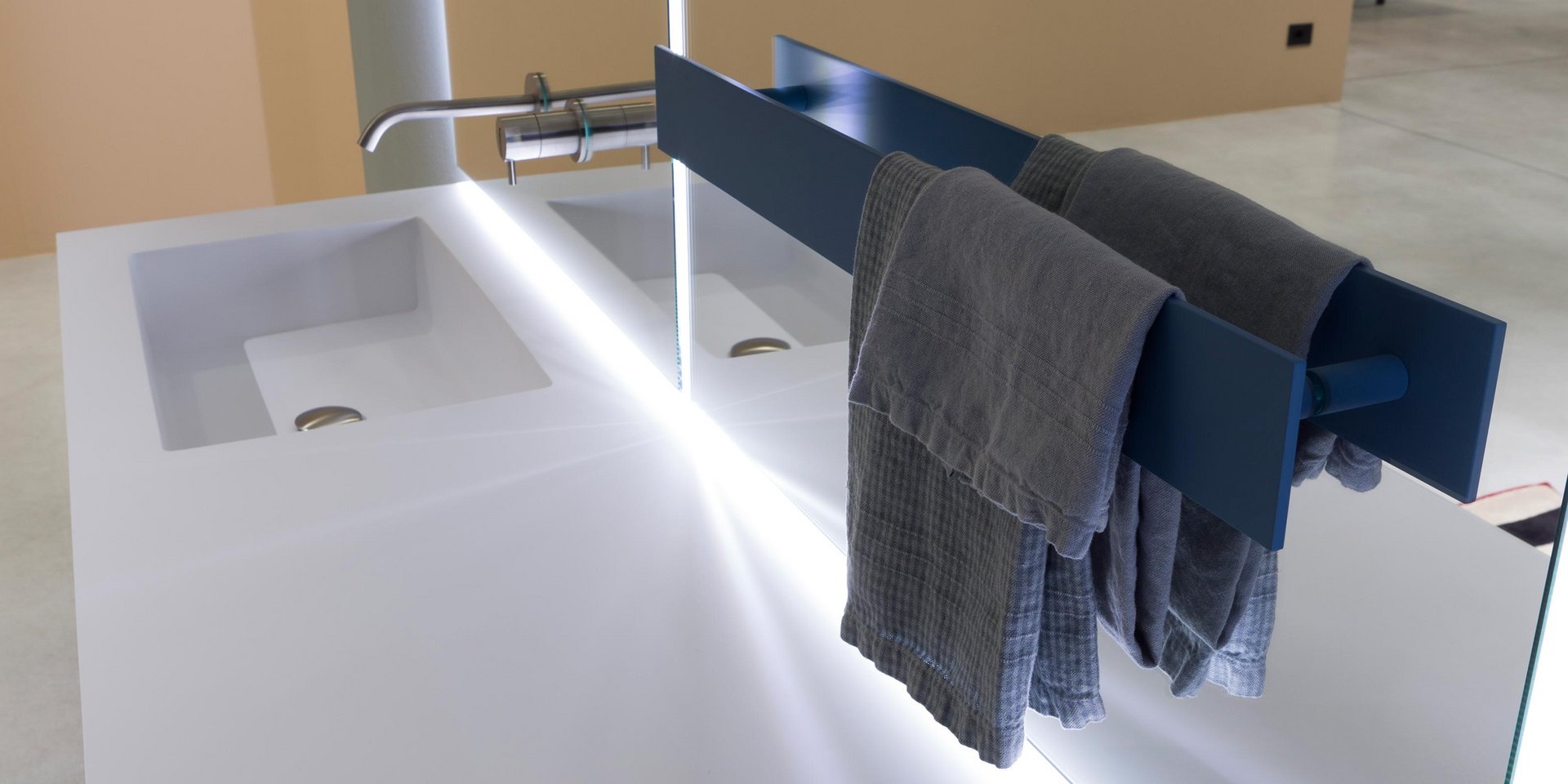 Towel holder in aluminum lacquered matt white, black or embossed as per our colour chart.