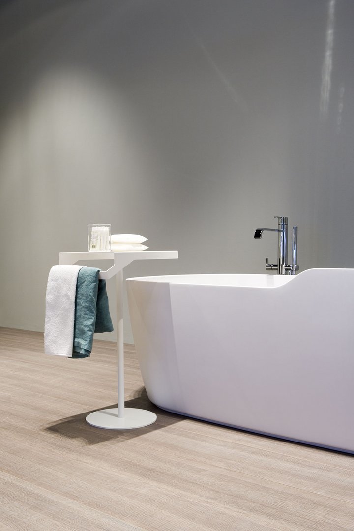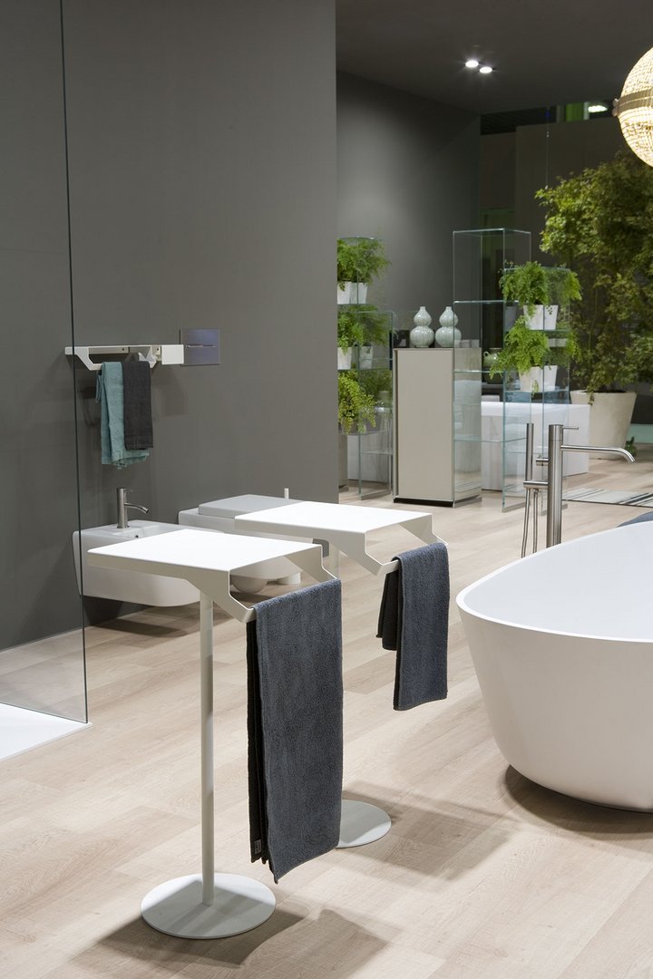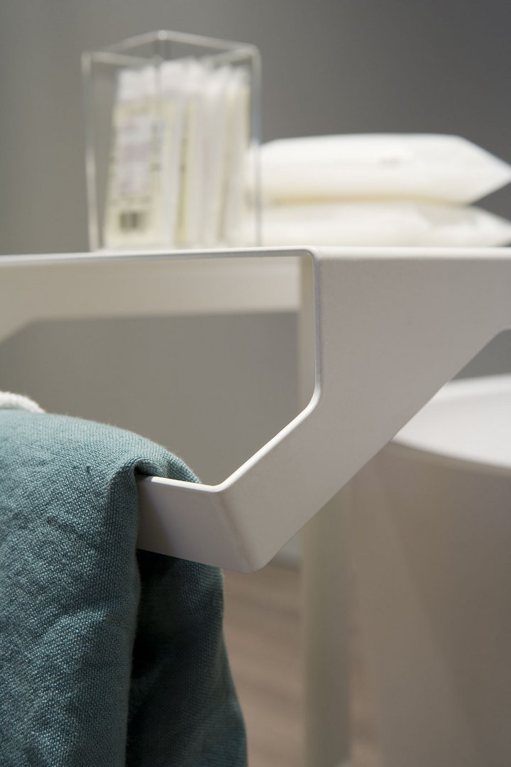 Stainless steel AISI 304 table with towel rail lacquered matt white, black or embossed as per our colour chart.