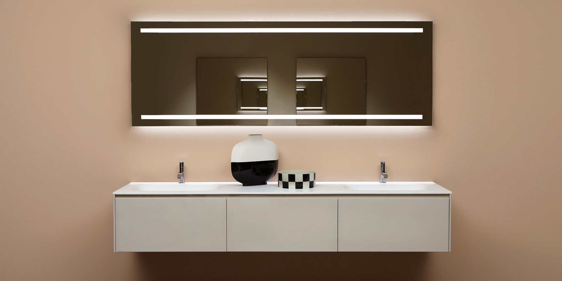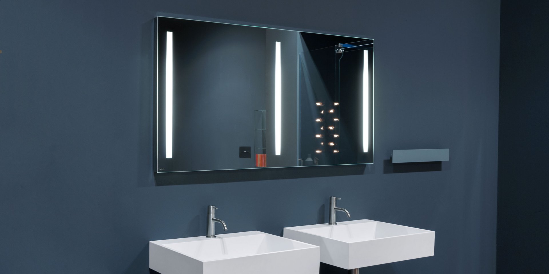 Polished edge mirror with white led lighting complete with polished stainless steel frame AISI 304