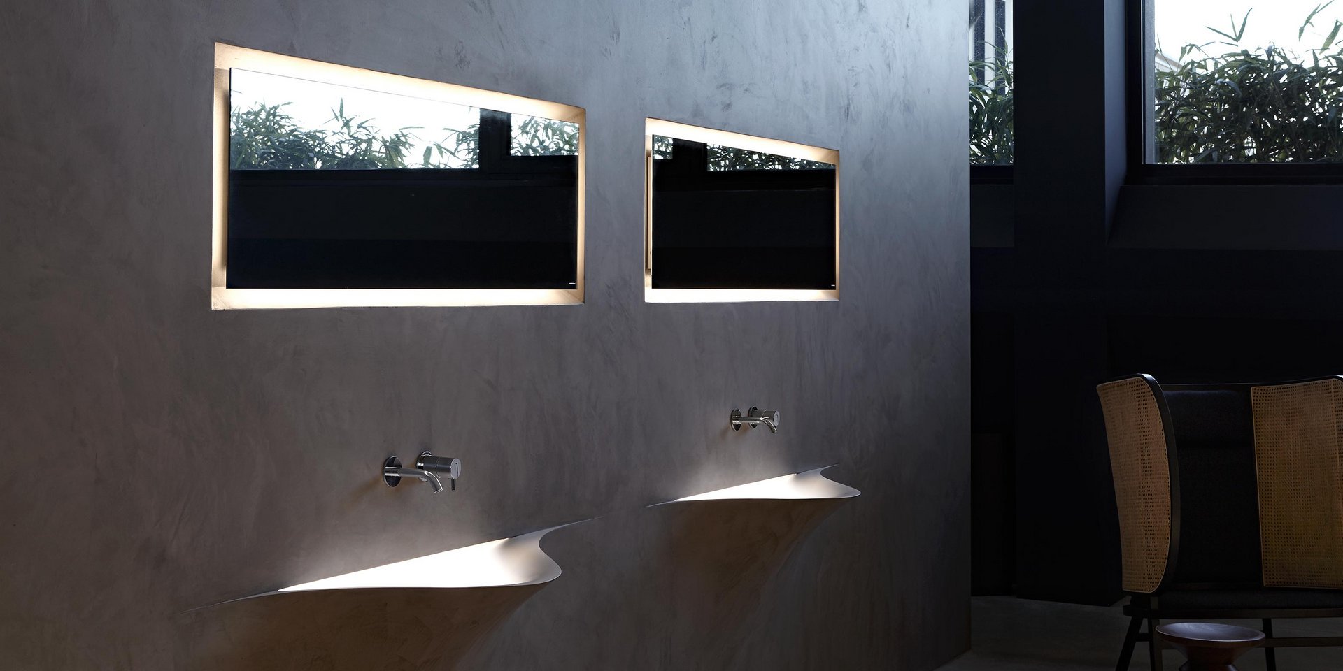 Encased wall mount polished edge mirror with white led lighting, mounted horizontally or vertically.