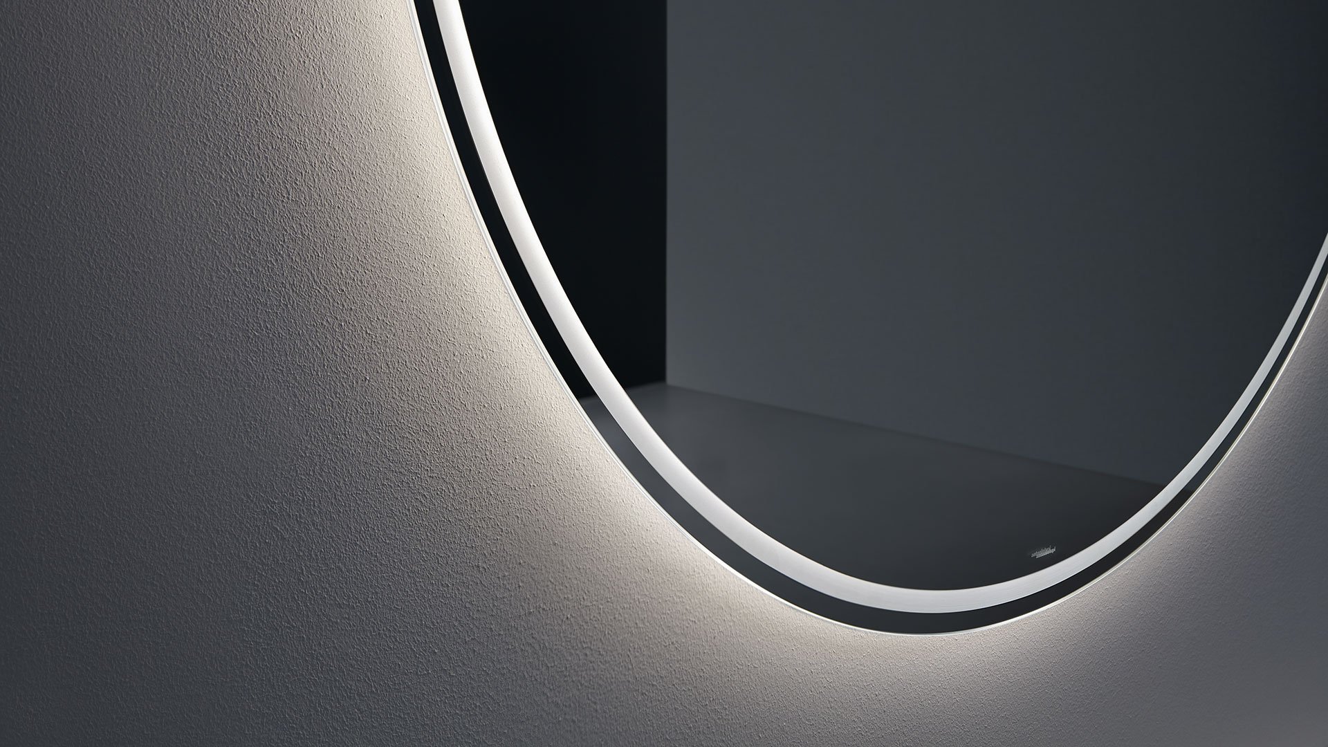 Polished edge mirror 5 mm thick with white led lighting, complete with black frame.
