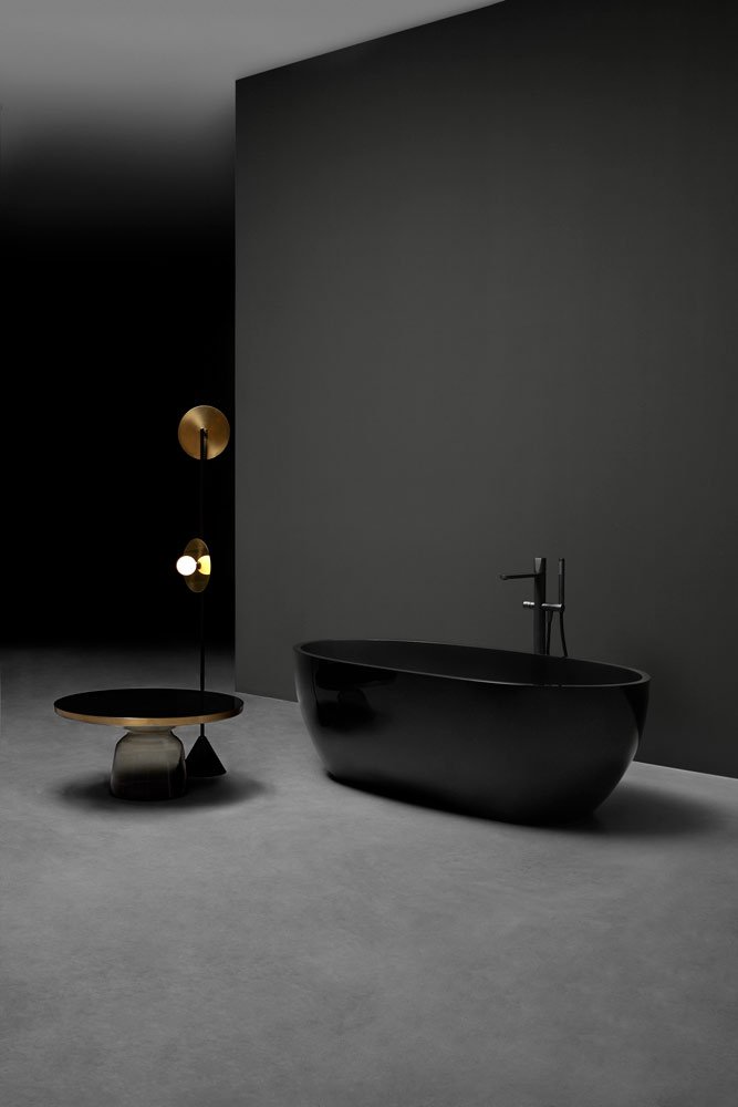 Oval Cristalmood? bathtub complete with drain pipe fitting and pressure plug, siphon and flexible hose.