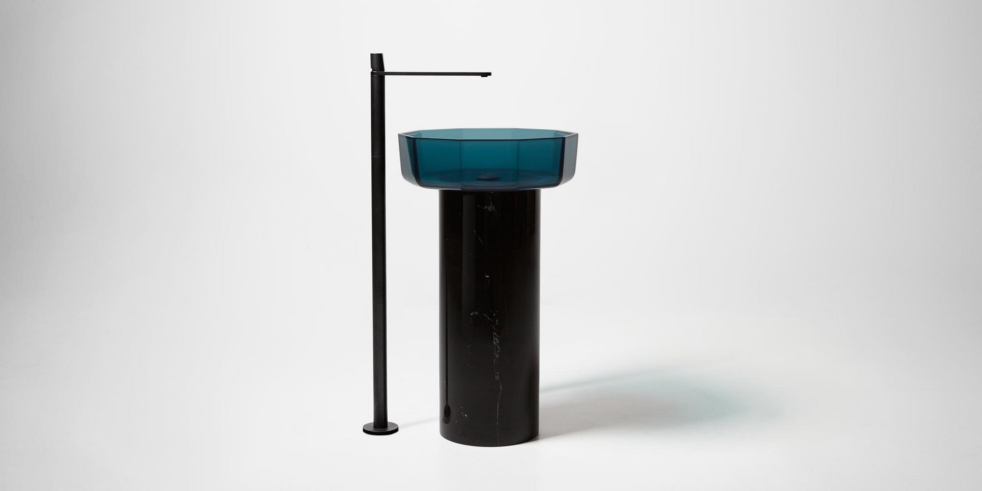 Decagonal shape sink in Cristalmood available in various colors as per our color chart, to be used top mount or combined with base Art. OPALE20 or Art. OPALE21, complete with drain pipe fitting and open plug.