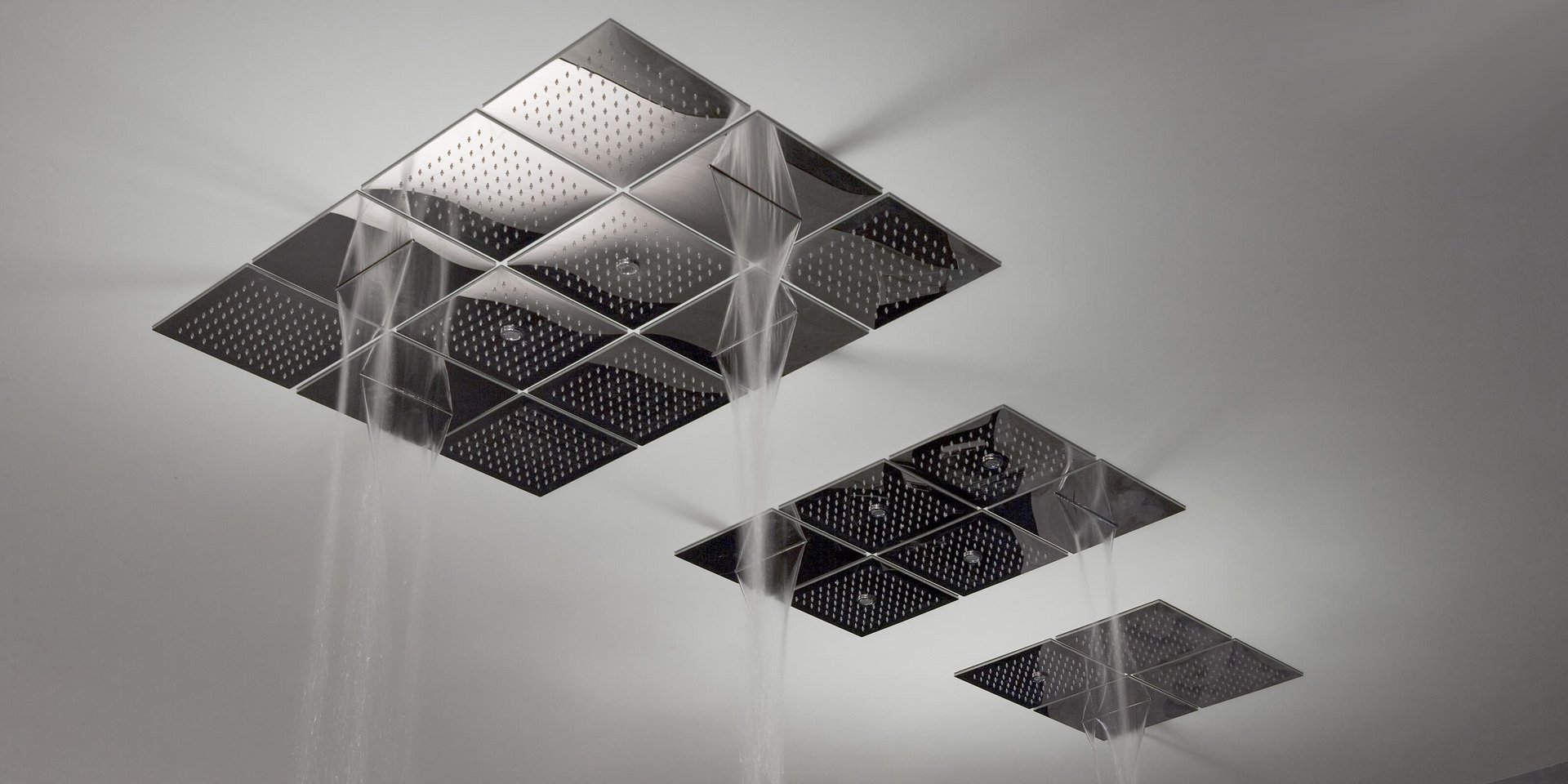 Encased modular showerhead in polished stainless steel AISI 304.